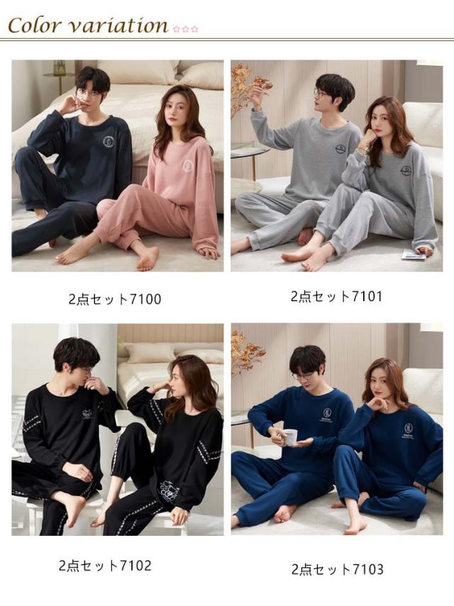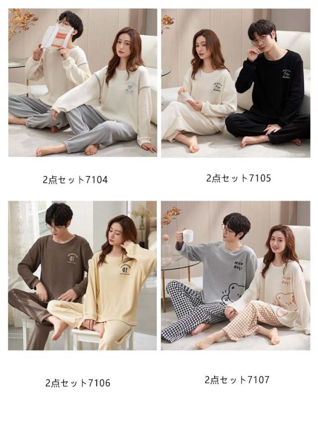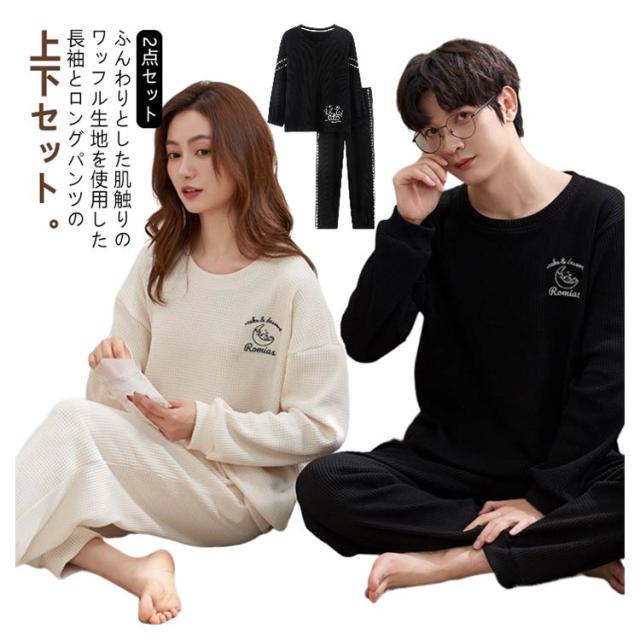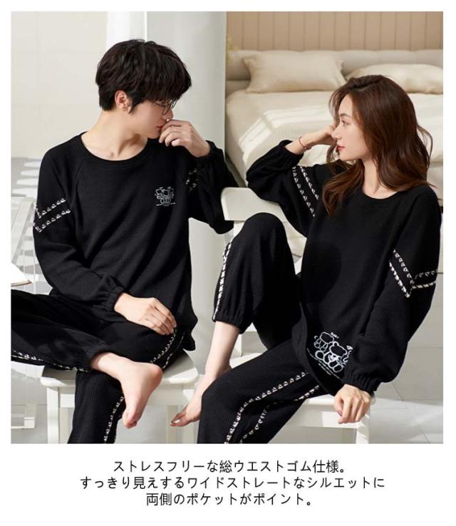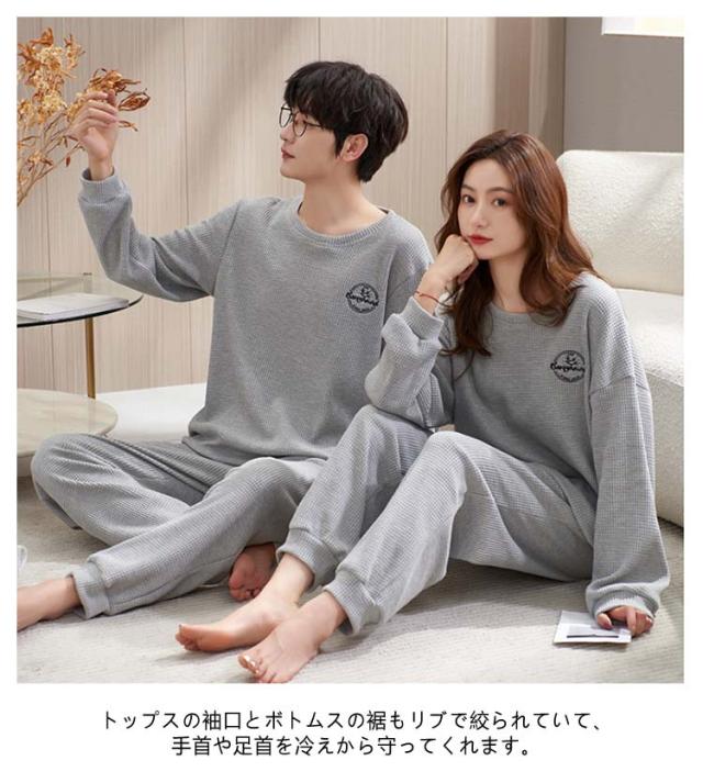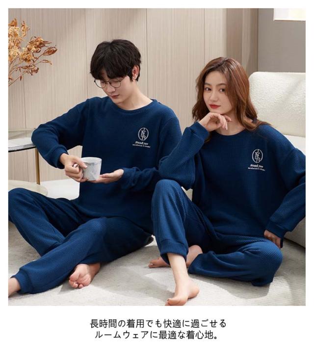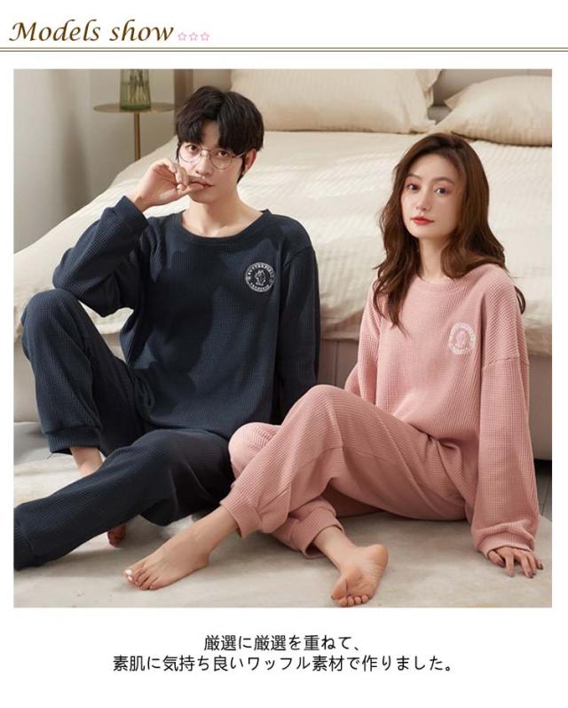 メンズ レディース 春 秋 パンツ 長袖 スウェット ペア ワッフル ペア 冬 パジャマ 生地 シンプル Tシャツ セットアップ ロングパンツ 上下セット ペアパジャマ パジャマ プルオーバー 簿手 柄 ロゴ 可愛い おしゃれ 部屋着 ルームウェア 2点セット 柔らかい 通気性