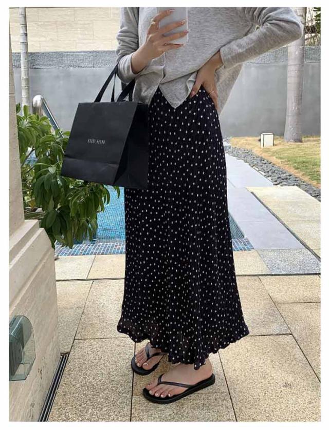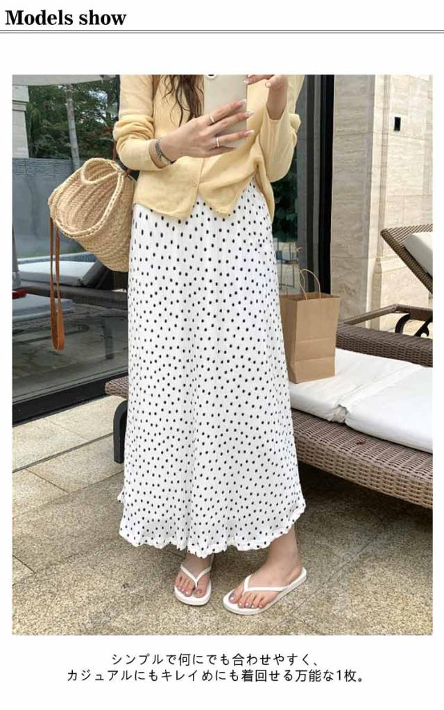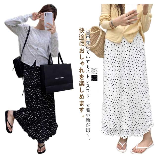 スカート レディース ボトムス ロングスカート フレアスカート タイトスカート Iラインスカート マーメイドスカート ロング ミモレ丈 ミディ丈 膝下 ひざ下 ドット柄 ストレート ウエストゴム きれいめ 低身長 春 カジュアル オフィス 通勤 美脚