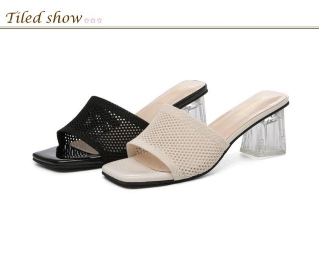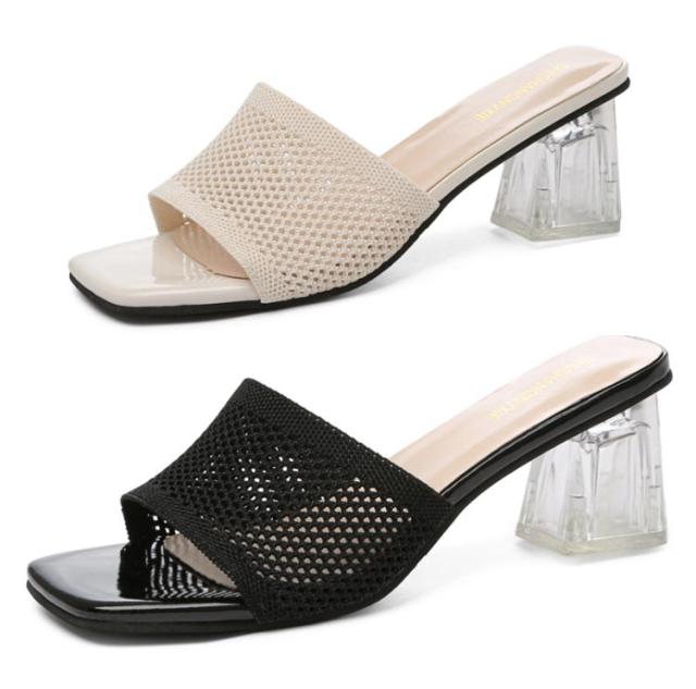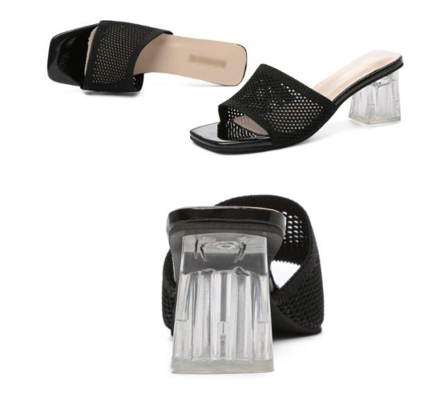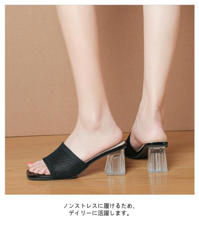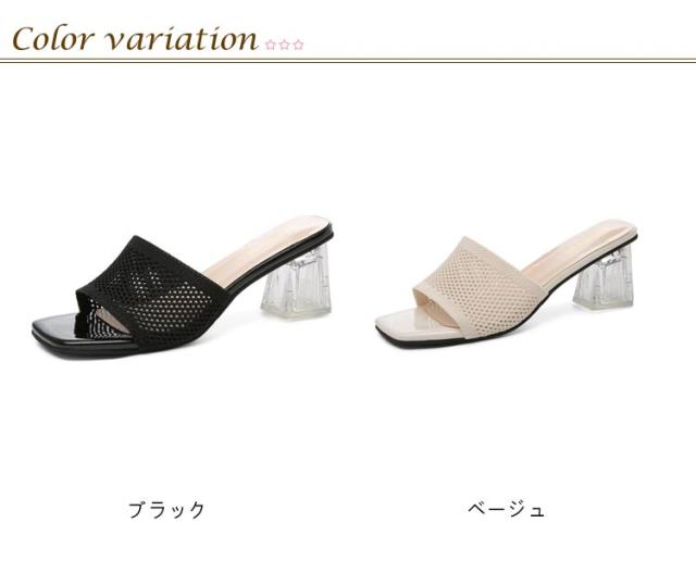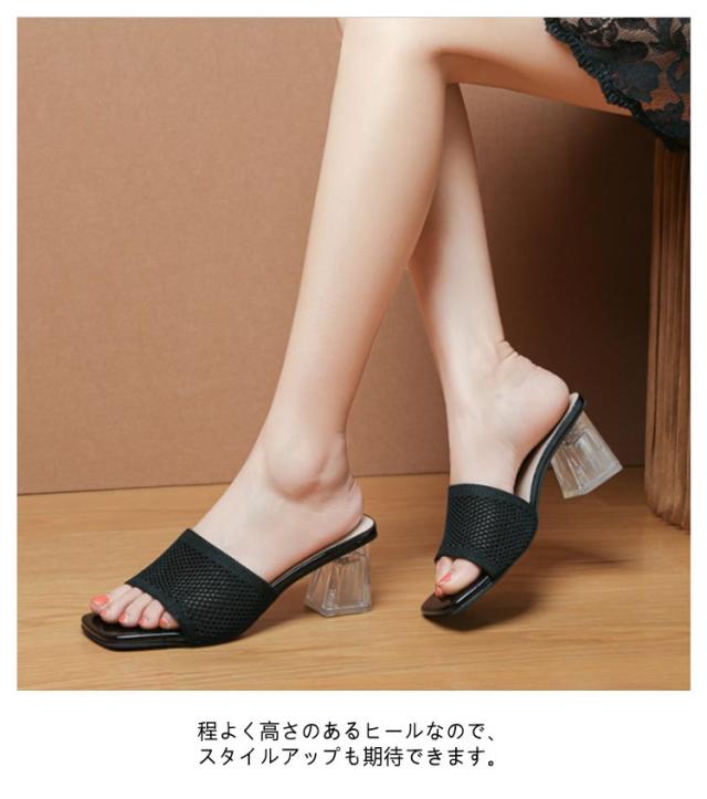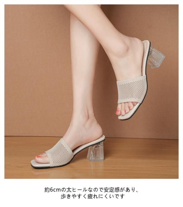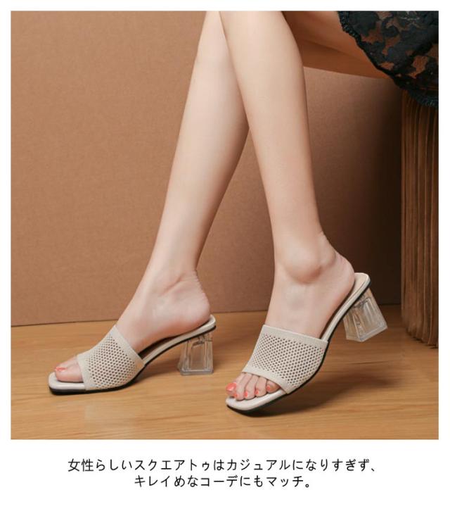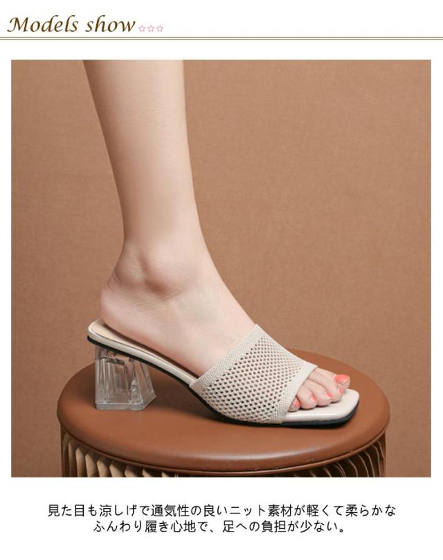 クリアヒール ミュールサンダル サンダル ミュール 走れる サンダル ニット 太ヒール レディース ヒール 6cm ニットミュール ニット シューズ 靴 スクエアトゥ チャンキーヒール 歩きやすい 痛くない