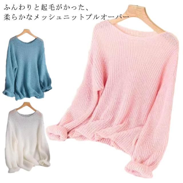 メッシュニット ニットセーター 重ね着 春秋 メッシュニット レディース ニットトップス ゆったり プルオーバー レイヤード シアーニット キレイめ おしゃれ 薄手 リラックス感 無地 大人女性 可愛い 長袖 体型カバー