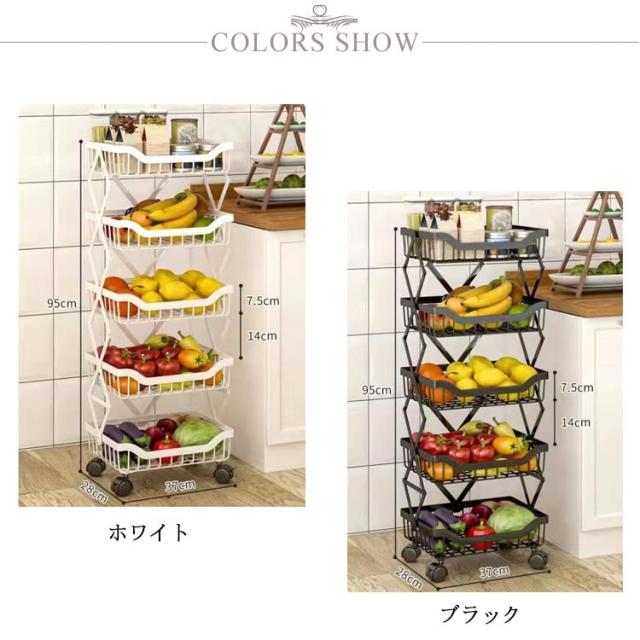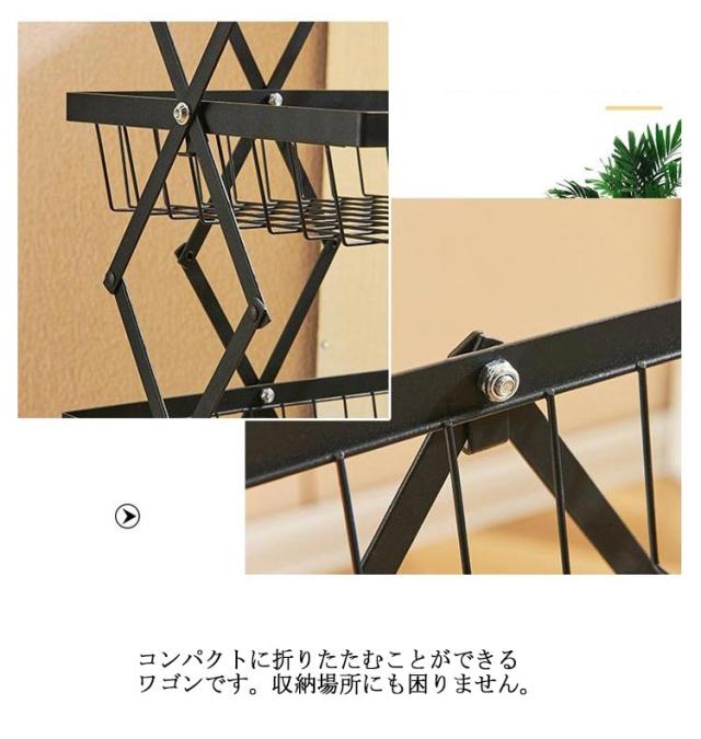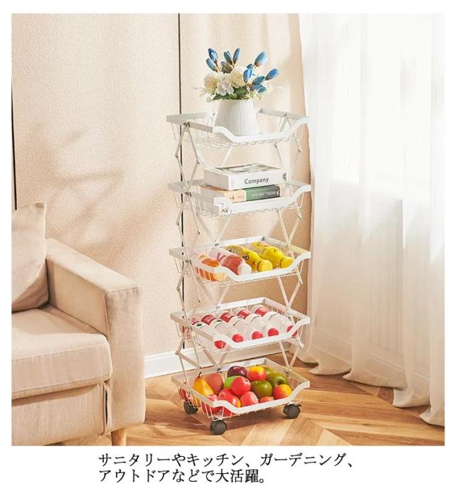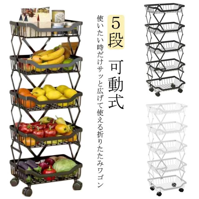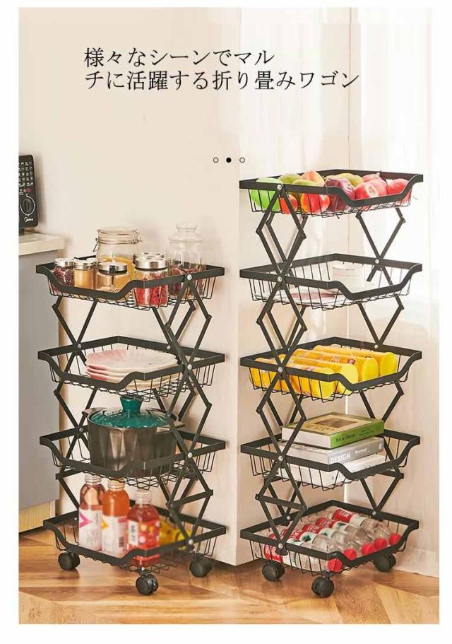 キッチンワゴン キャスター付き 折りたたみ ワゴン 折りたたみラック 5段 バスケット ワゴン 棚 ラック 収納 省スペース フォールディング 調味料ラック 小物収納 トローリーワゴン ダイニング 持ち運び アウトドア 省スペース コンパクト