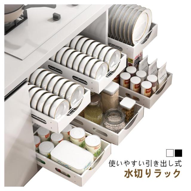 水切りラック シンク下 茶碗 スライド式 食器収納ラック お皿立て 食器立て 皿 引き出し 食器棚 設置簡単 コンパクト 北欧風 ディッシュスタンド キッチン整理整頓 お皿収納ラック お碗収納ラック 水切りかご キッチン 大容量 調味料ラック 調味料入れ シンプル 送料無料