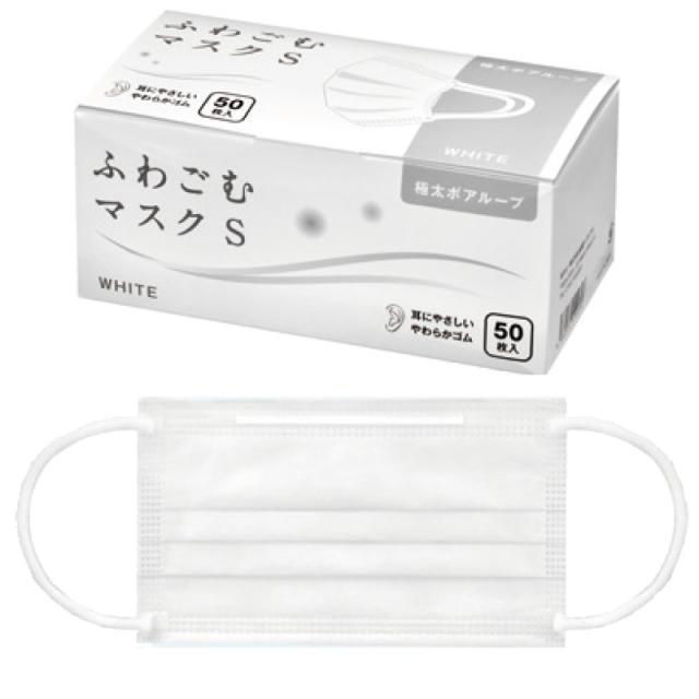 ふわごむマスク ホワイト Sサイズ【95×165mm】1箱(50枚入)【不織布マスク 花粉 太ゴム】