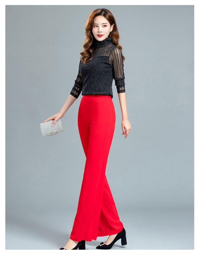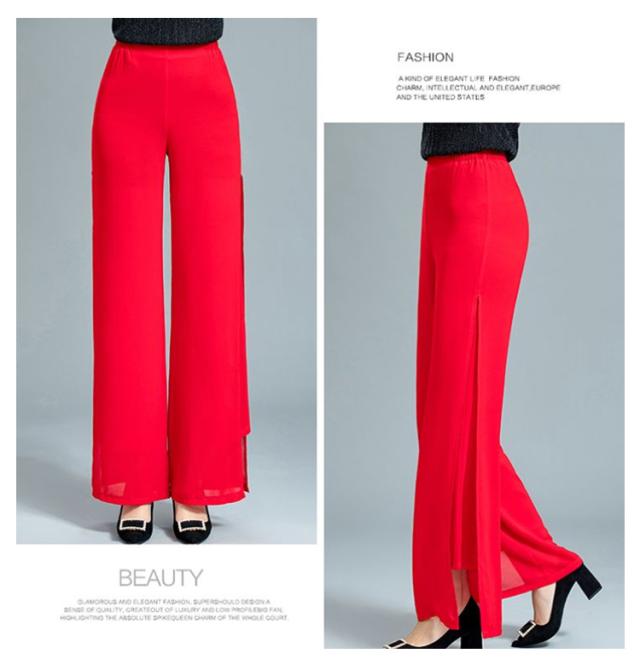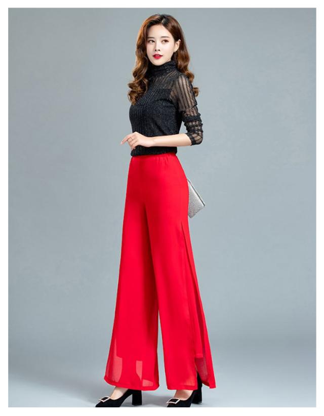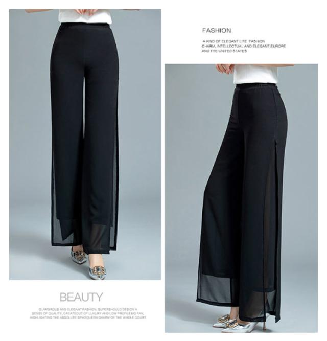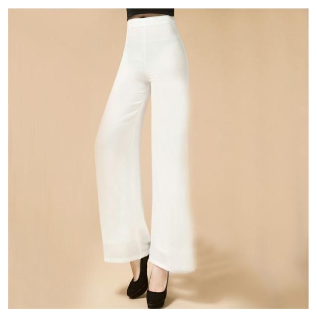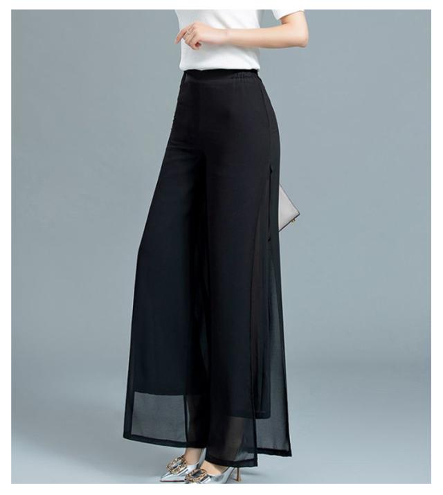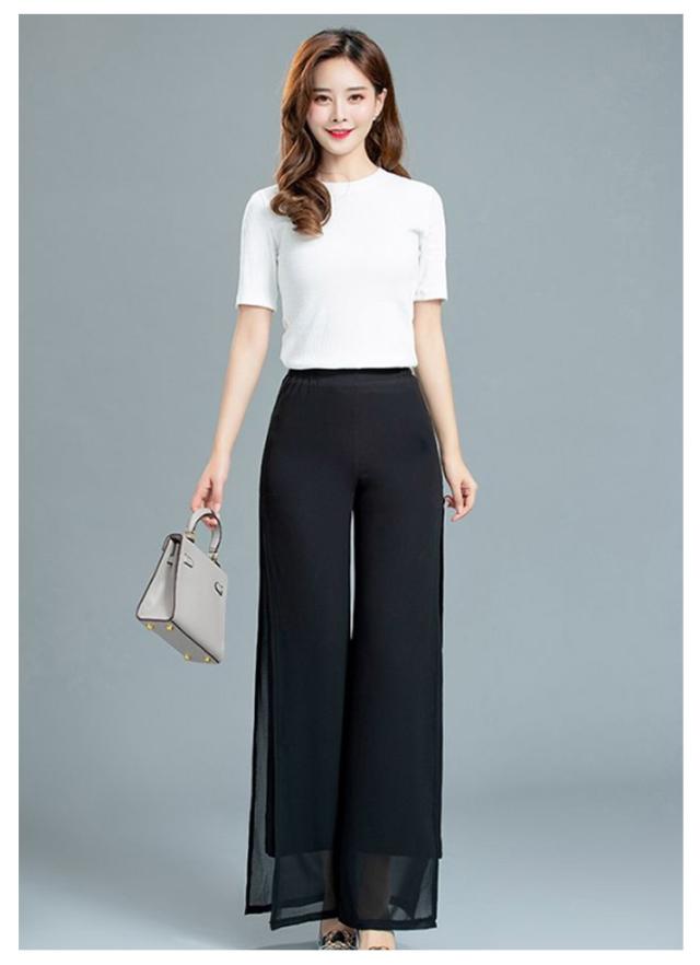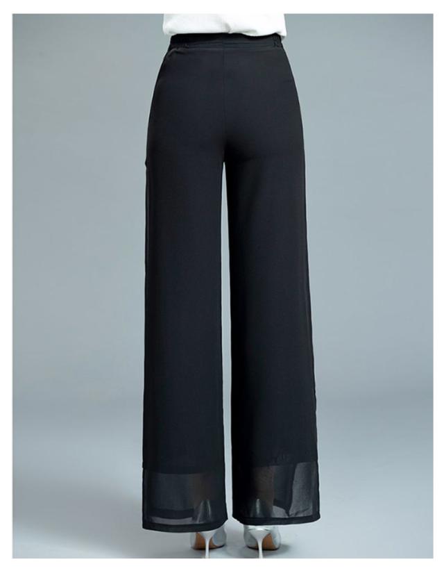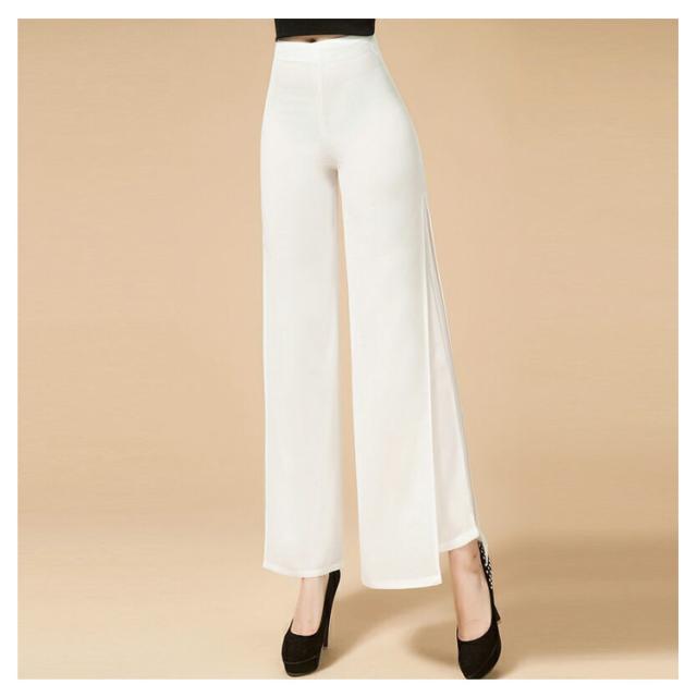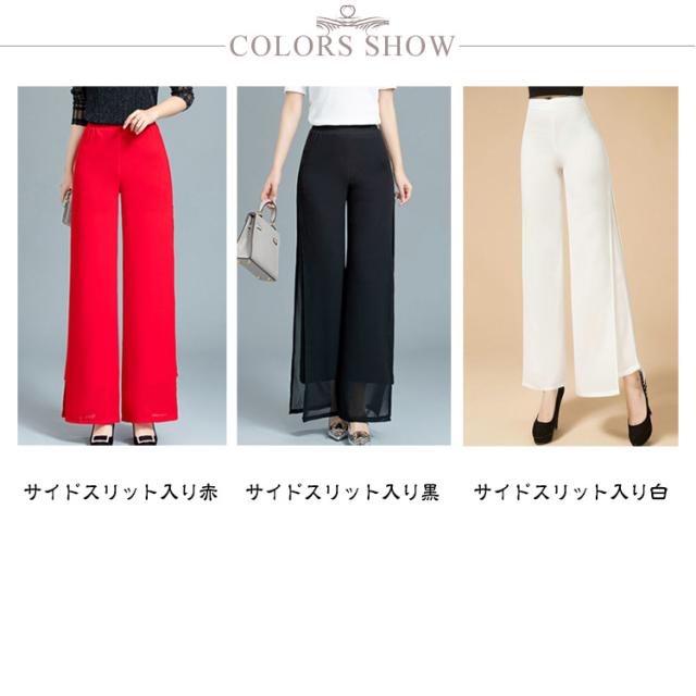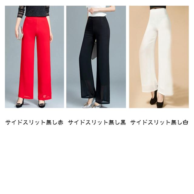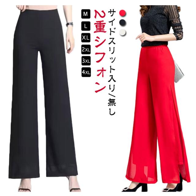 ウエストゴム ブラック ガウチョパンツ ダンス ハイウエスト ワイドパンツ ワイドパンツ 黒 ダンスパンツ 2重シフォン ホワイト ワイドパンツ レディース ロングパンツ レディース ワイドパンツ ストレート レディース ボトムス 春夏 白 大人 スリット入り 無地