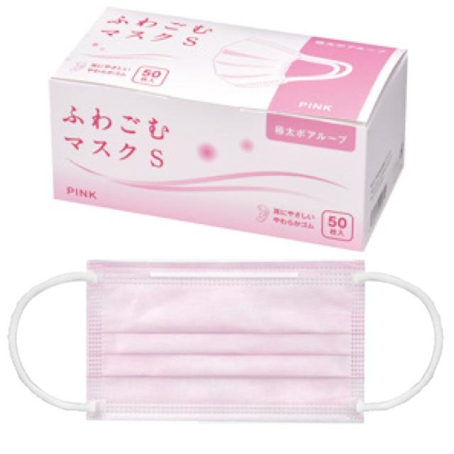 ふわごむマスク ピンク Sサイズ【95×165mm】1箱(50枚入)【不織布マスク 花粉 太ゴム】