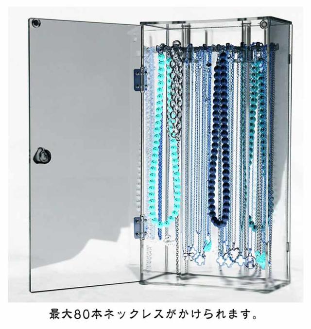 | ネックレスが絡まずに収納出来るだけじゃないっ!お気に入りのジュエリーを、飾って、見せて、便利に収納! 扉式なのでネックレスの出し入れも楽々! フックは回転するので、奥に吊るしたものも取り出しやすくなってます! 透明度が高く、シンプルなデザインなのでネックレスを入れて飾っておくだけで お部屋のインテリアにも! 最大80本ネックレスがかけられます。 | |