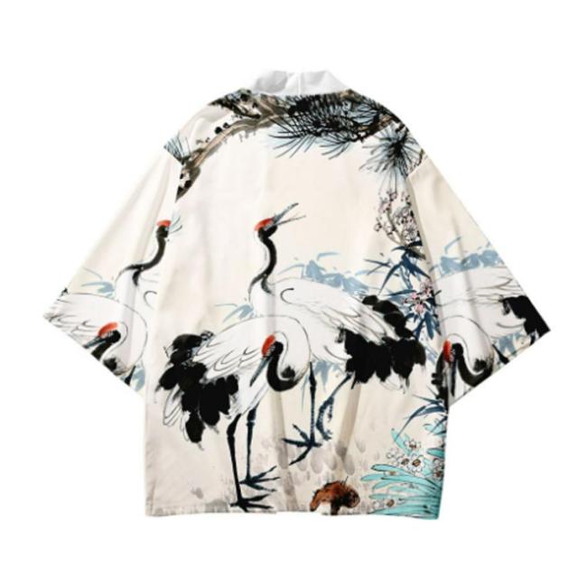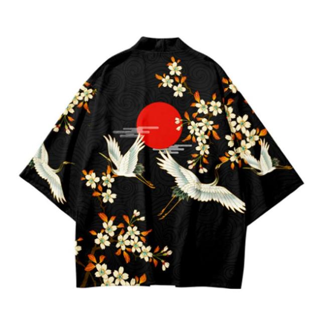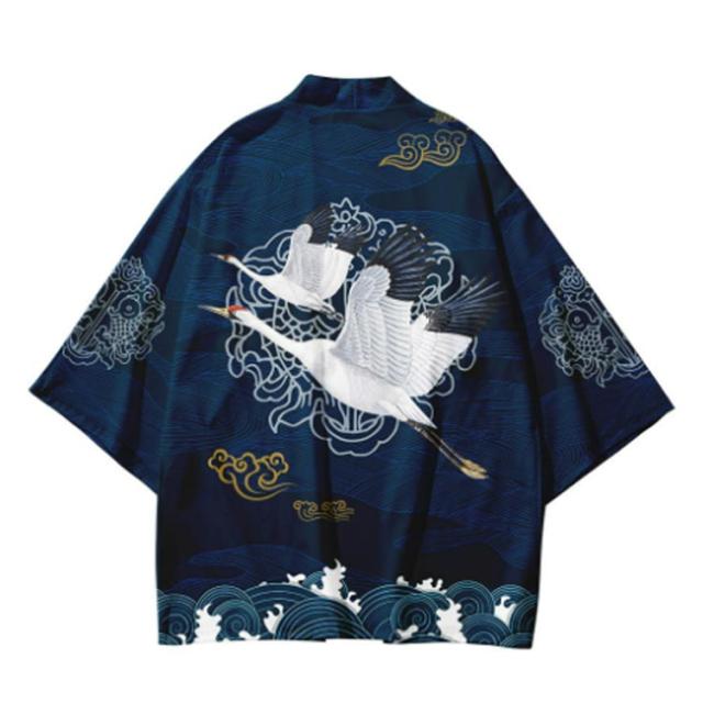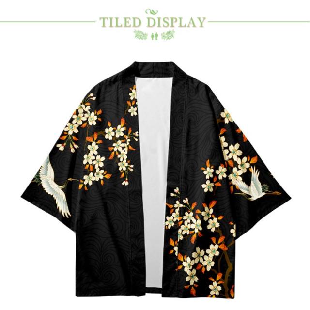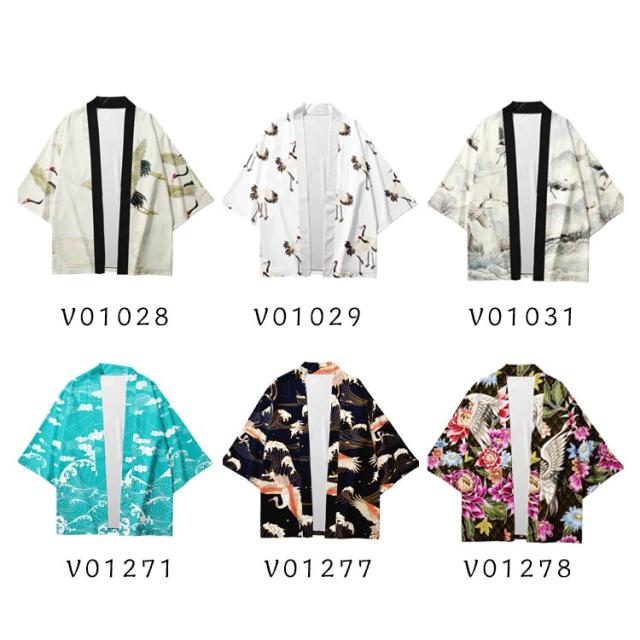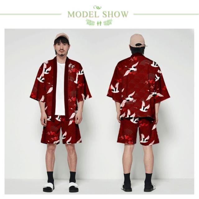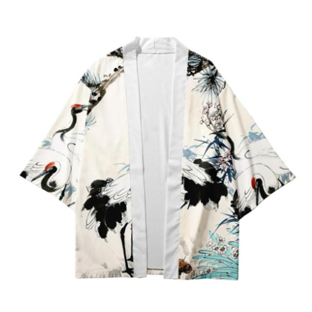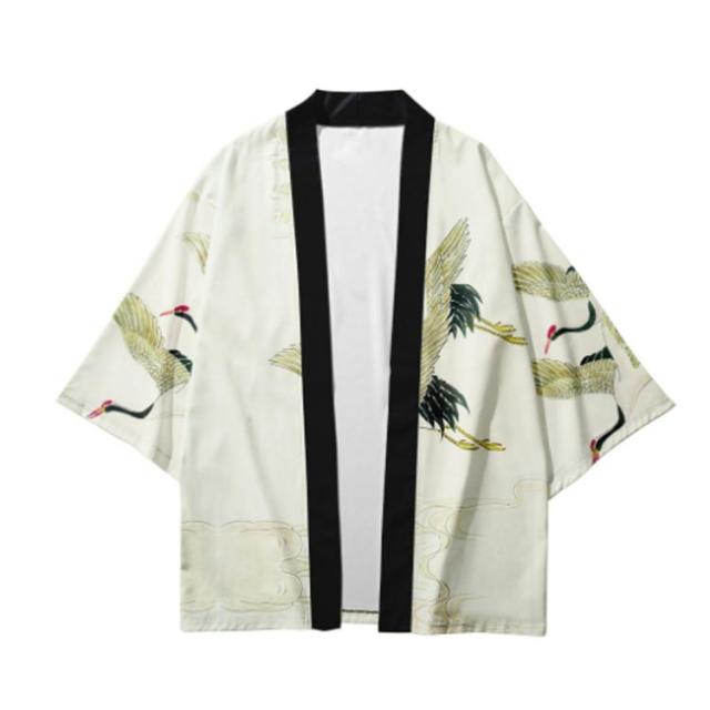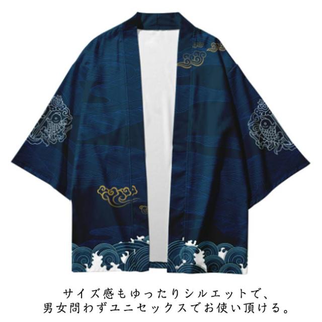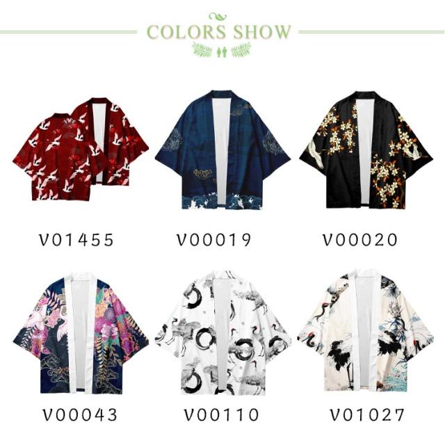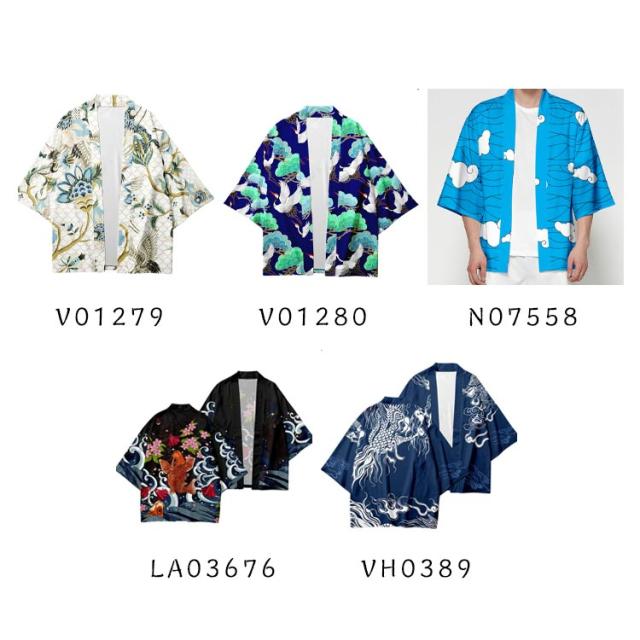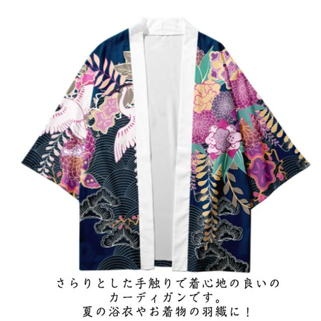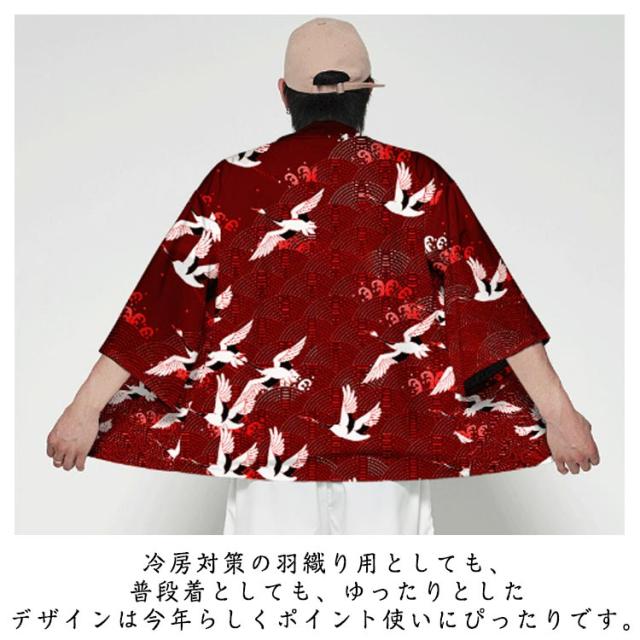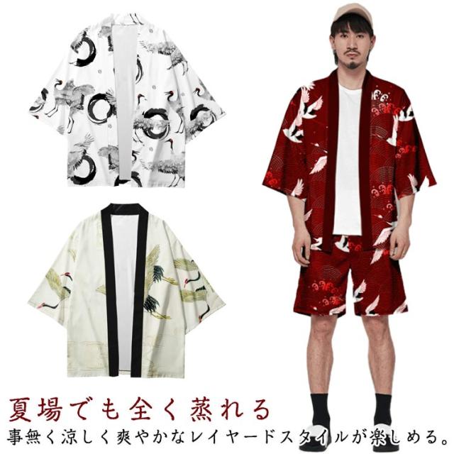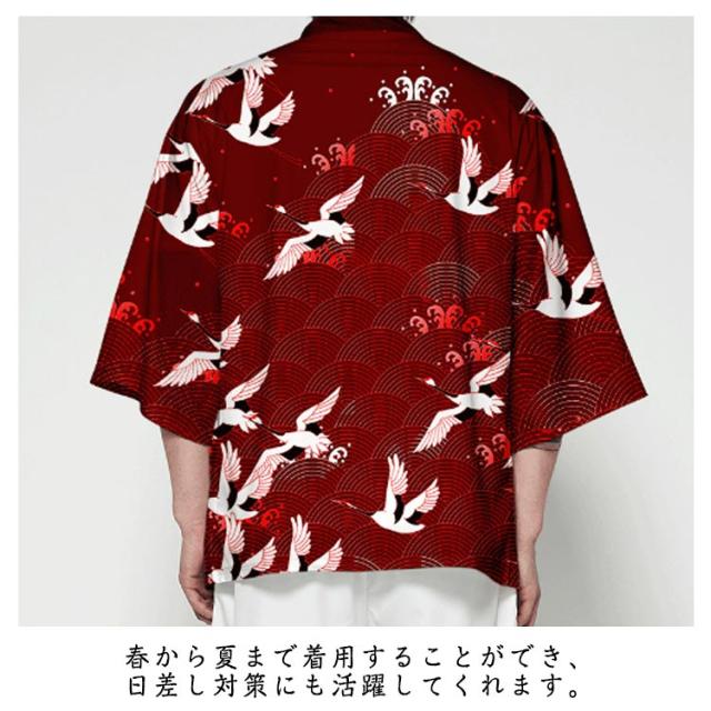 浴衣風 羽織 メンズ 羽織 甚平風 カーディガン カーディガン 夏用 七分袖 柄物 鶴柄 着物 はおり カジュアル 花火大会 男性用 和式 夏服 おしゃれ ゆったり トップス アウター 七分袖 総柄 サマーカーディガン 重ね着 オーバーサイズ