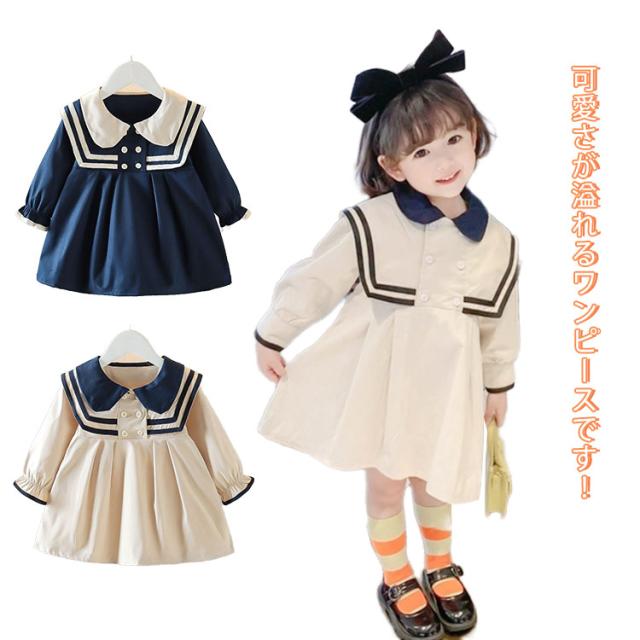 女の子 ベビー ワンピース ワンピース 長袖 ワンピース フォーマル 子供服 入園式 ライン入りワンピース 春夏秋 膝上 かわいい 入園式 お受験 面接 卒業式 発表会 結婚式 お祝い