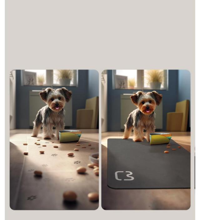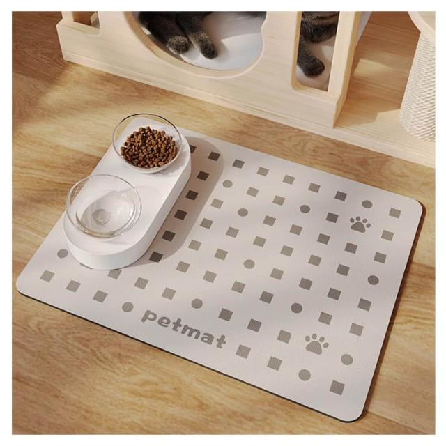 | 撥水加工でお手入れ簡単なランチョンマット。 ボウル置き・水飲みき置き場におくだけで床を守ってくれます。 食べこぼしなどもさっと拭くだけで綺麗なので清潔でストレスフリーです! 滑り止め加工付きでペットが走ってきても動くことがなく安全です! 食事中に動いてしまう心配もありません! | |