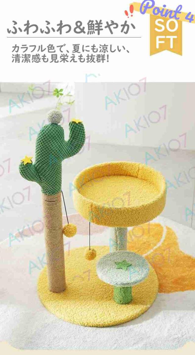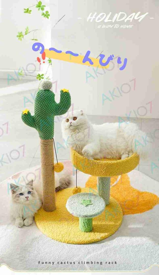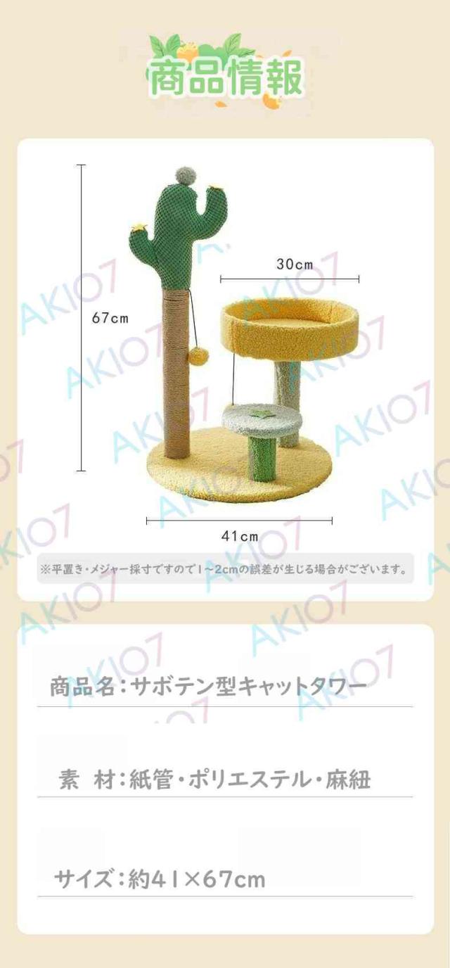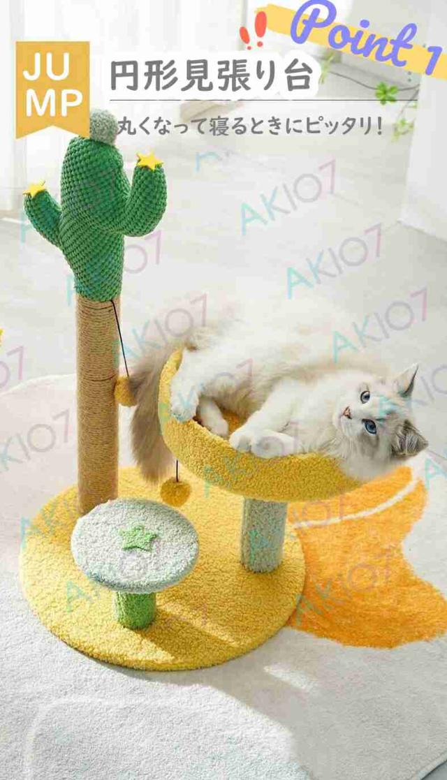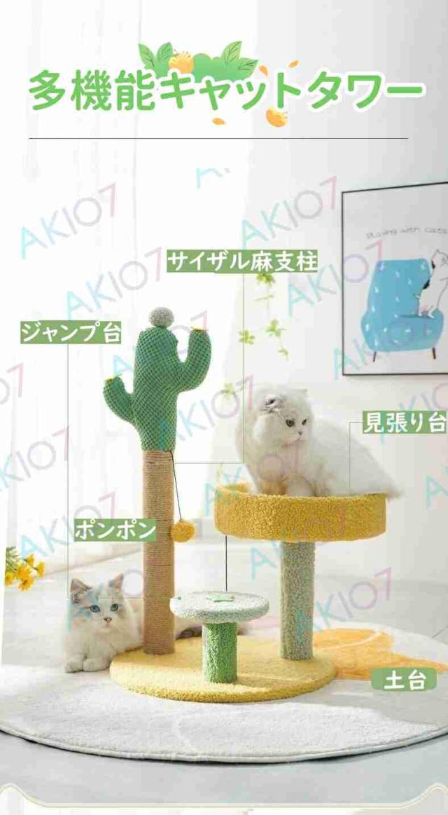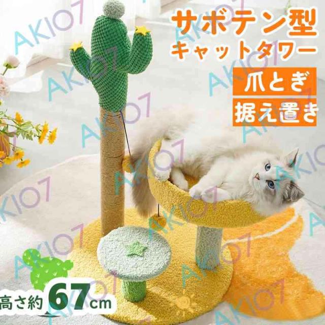 【高さ約67cm】爪研ぎ ペットベッド 猫タワー サボテン型 中型猫 多頭飼い 中型 猫 猫おもや 猫グッズ 爪磨き 爪とぎ 麻縄 組立簡単 お手入れ用品