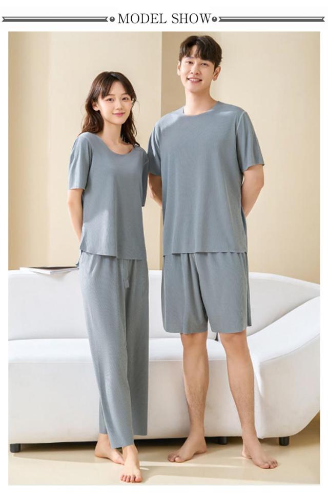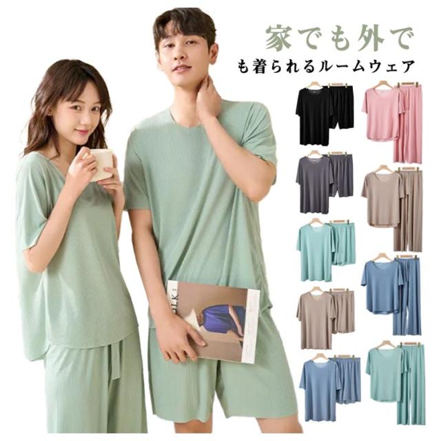 | 家でも外でも着られるルームウェア 男女兼用のカップルスタイル 男性は半袖半ズボン、女性は半袖長ズボンを着用します。 伸縮性があり履き心地も快適です。 柔らかく肌に優しく、軽くて通気性が良い 耐摩耗性、シワになりにくい、清涼感のある生地 | |