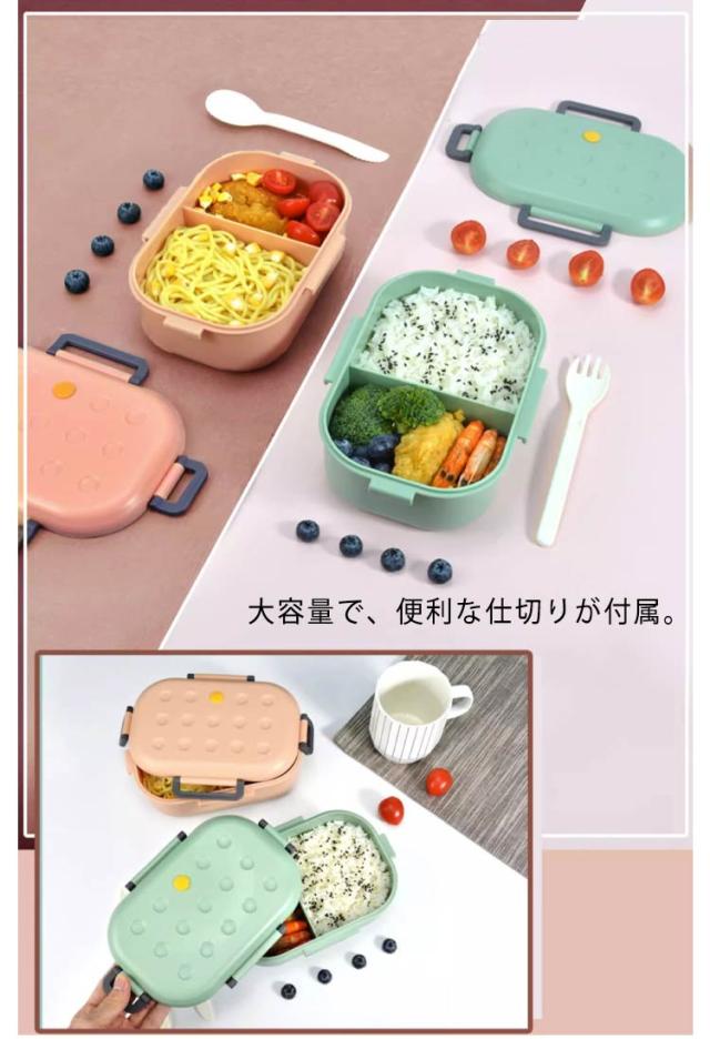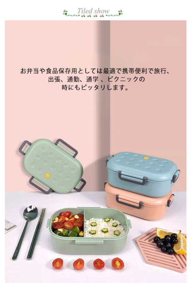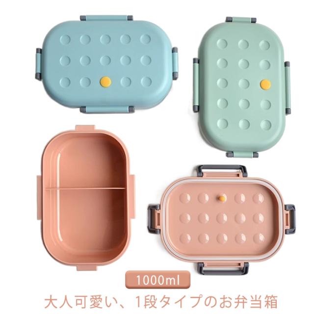 1段 仕切付き おしゃれ 電子レンジ対応 2コマ 会社出勤 お弁当箱 大容量 ピクニック 便利 ランチボックス 食事用 入社 遠足 お弁当箱 シンプル 学校学生 1000ml 4点ロック 可愛い おしゃれ お弁当 ブルー ピンク グリーン