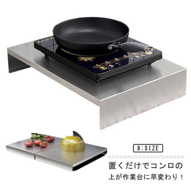 | 置くだけでコンロの上が作業台に早変わり! キッチンの狭いマンションやアパートの1口サイズのガスコンロ用のカバーとしてご使用いただけます。 または、2口コンロをご使用のお宅でも、片側の1口をカバーすることで調理台の延長としても使えます。 もちろんビルトインタイプのガスコンロだけでなくIHにも使えます。 お手入れ簡単、サビに強い304ステンレス製です。 錆や汚れに強く掃除も簡単で長持ちします! | |