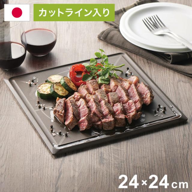 カクセー M-2424BW まないた 角 2424 ブラウン 均等 〇×ライン 目盛り付 汁こぼれ防止 溝付き 全周テーパーカット(代引不可)【送料無料】