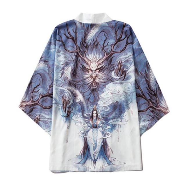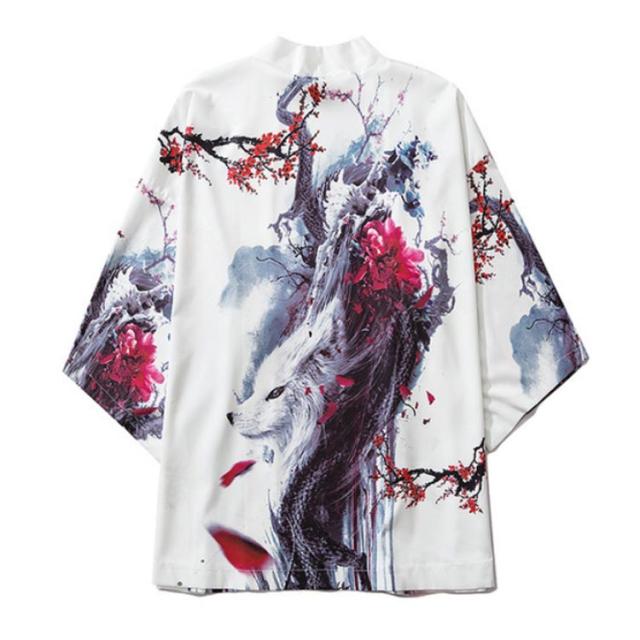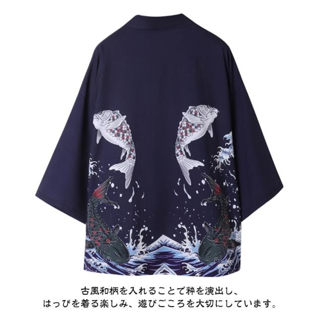 法被 半纏 はんてん ハッピ 和柄 カーディガン 羽織り 浴衣 ゆったり メンズ レディース プリント 桜 狛犬 狐面 キツネ お面 袢天 はっぴ 半纏 法被 お祭り衣装 ダンス衣装 コスプレ 衣装 コスチューム 和柄 おしゃれ はっぴスタイル 衣装