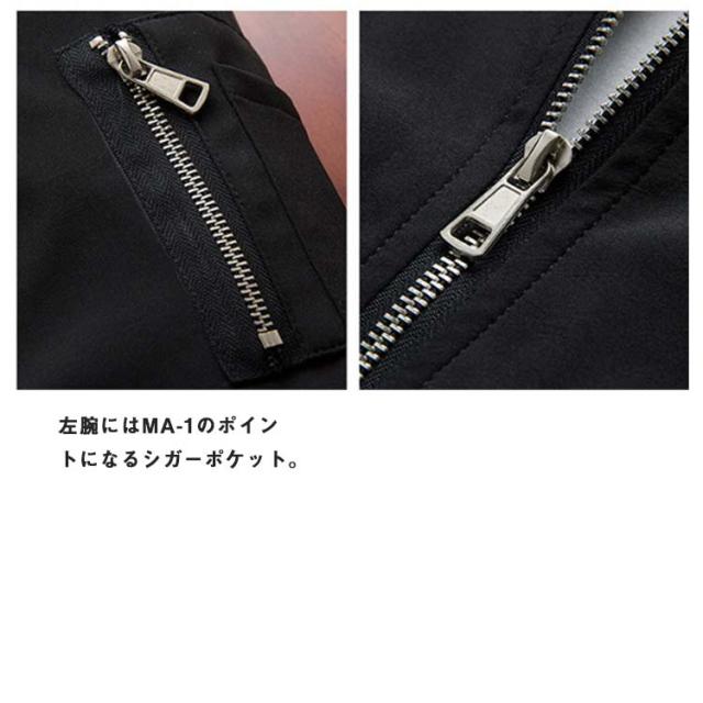 | M-6XL!シンプルで洗練されたデザインのMA-1ジャケット。ノーカラーのリブ襟でスッキリとした印象に。 オシャレなZIPファスナー! 袖口はフィット感のあるリブ仕様が施されているため防寒性に優れています。 左腕にはMA-1のポイントになるシガーポケット。 サイドにはポケット付き、携帯や小物が入りやすいです。 裾はフィット感のあるリブで、冷気の侵入を防ぎます。 内ポケットも付き、使い勝手! | |