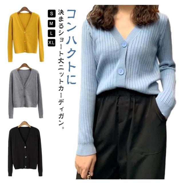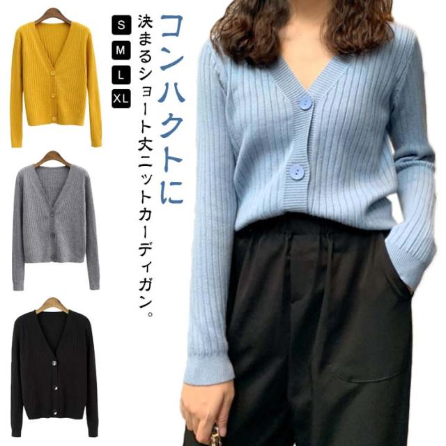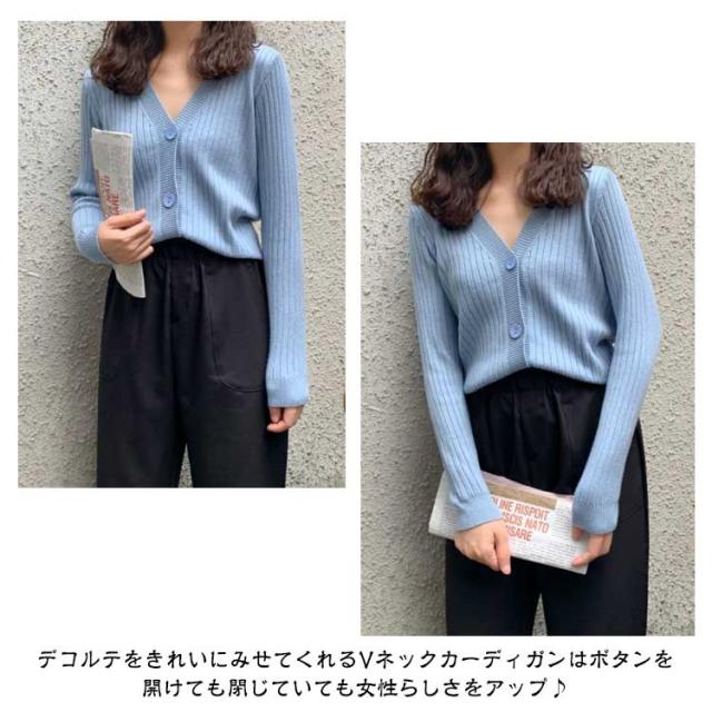 ニットカーディガン ショート丈 レディース Vネック リブニット カーディガン 前開き ボタン付き 羽織 長袖 Vネック リブ 短め 2way 無地 重ね着 レイヤード 肌触り 柔らかい ブラック アイボリー オレンジレッド ブルー イエロー グレー ベージュ ピンク ワインレッド