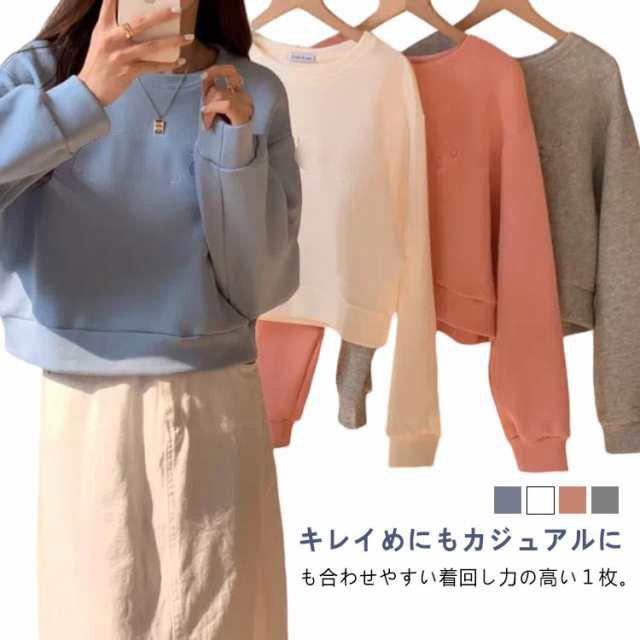 プルオーバー レディース ショート丈 長袖 トップ トレーナー ミニパーカー tシャツ トップ スウェットシャツ かわいい 春秋 冬服
