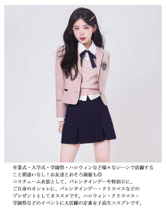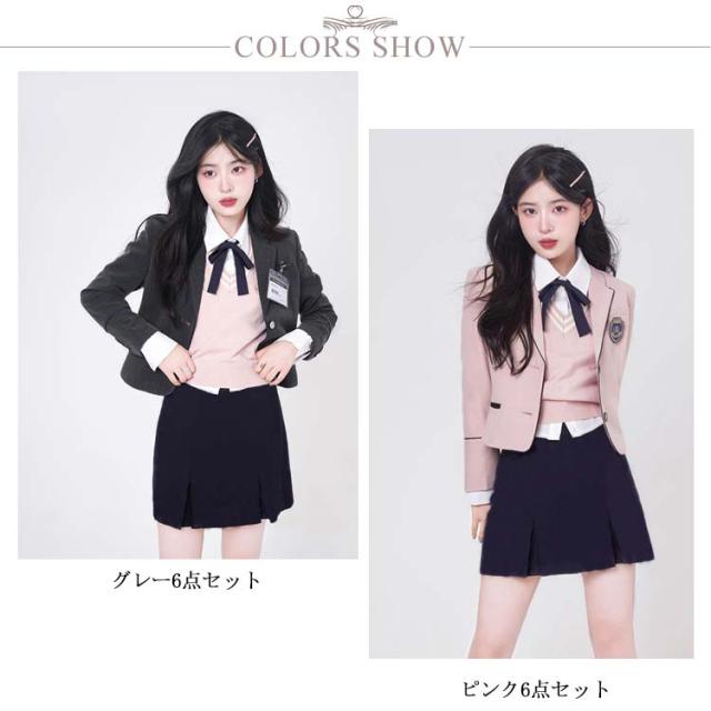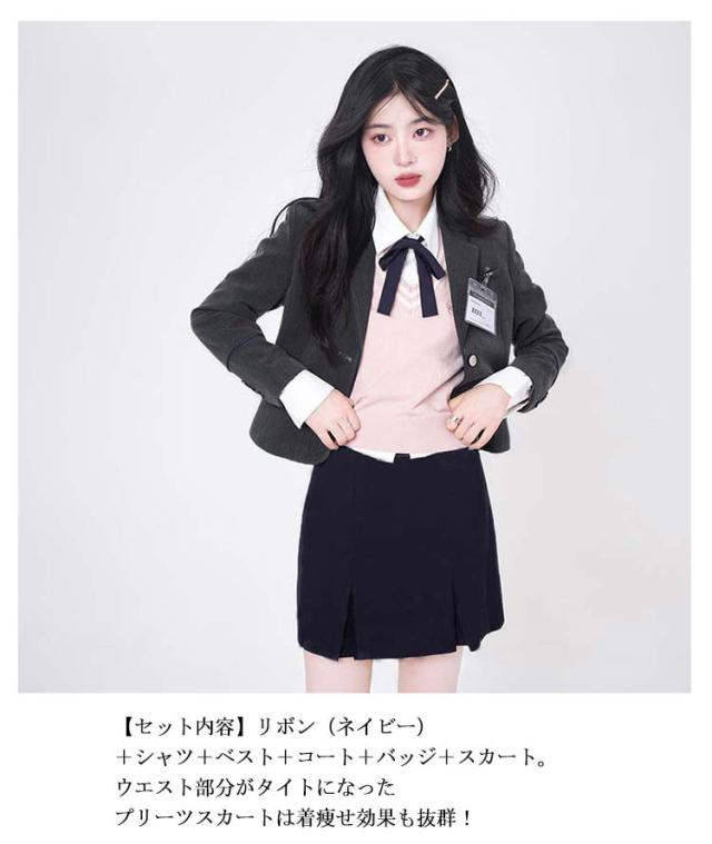 韓国 制服 6点セット ブレザー スカート ベスト シャツ リボン バッジ フォーマルスーツ 長袖 女子高生 卒業式スーツ 入学式 スーツ レディース 女子 学生服 学生制服 JK制服 高校生制服 制服コスプレ お洒落 スクール 卒業式 発表会 ハロウィン コスプレ 仮装 コスチューム