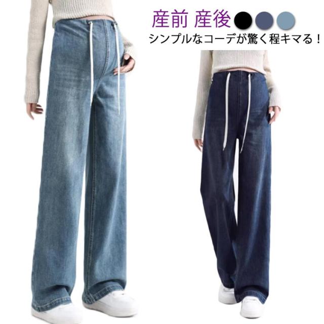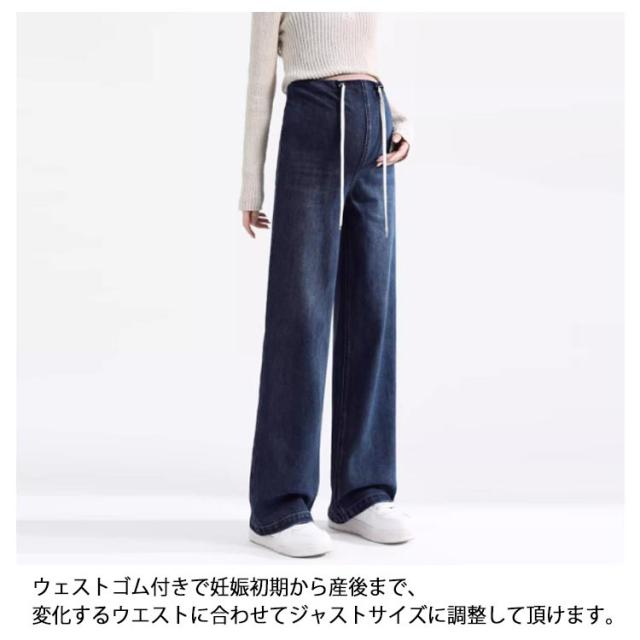 マタニティウェアに見えない!デニムワイドパンツ ジーンズ マタニティーパンツ マタニティウェア 妊婦服 デニムパンツ ストレッチ 妊婦 マタニティ ボトムス デニム ガウチョパンツ チノ マタニティウェア 産前 産後 ワイドパンツ
