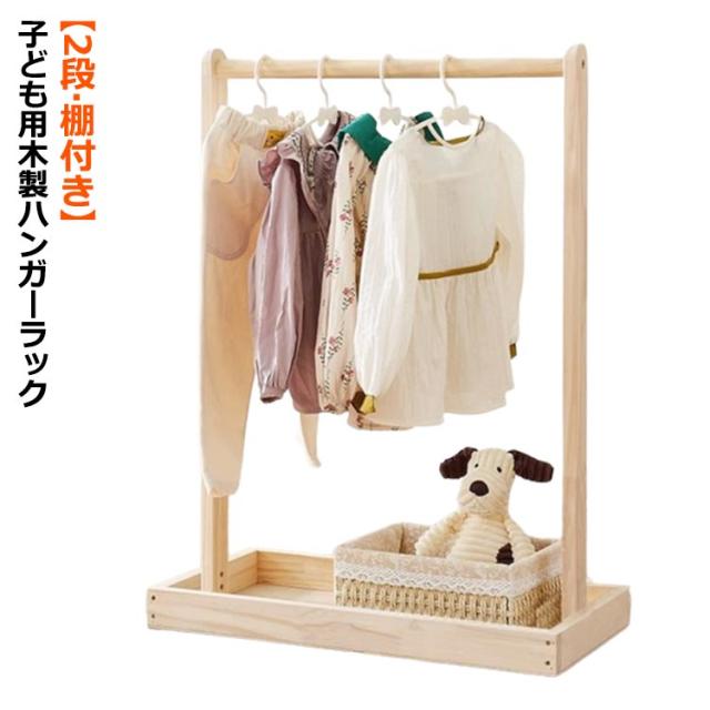 ハンガーラック 木製 棚付き 2段 子ども キッズ ペット ワードローブ 子供用 ペット用 ハンガーラック おしゃれ 子供部屋 子供服 衣類収納 洋服収納 ペット 犬 猫 お洋服ラック ペットウェア 犬服 猫服 収納 小学生 男の子 女の子 ナチュラル