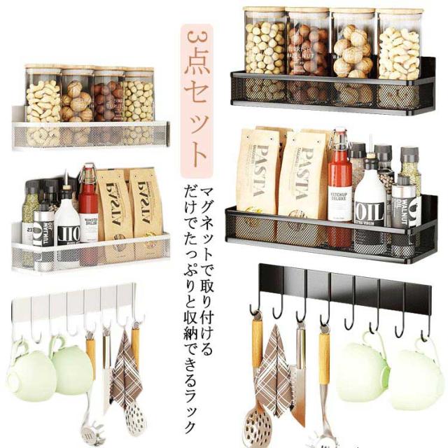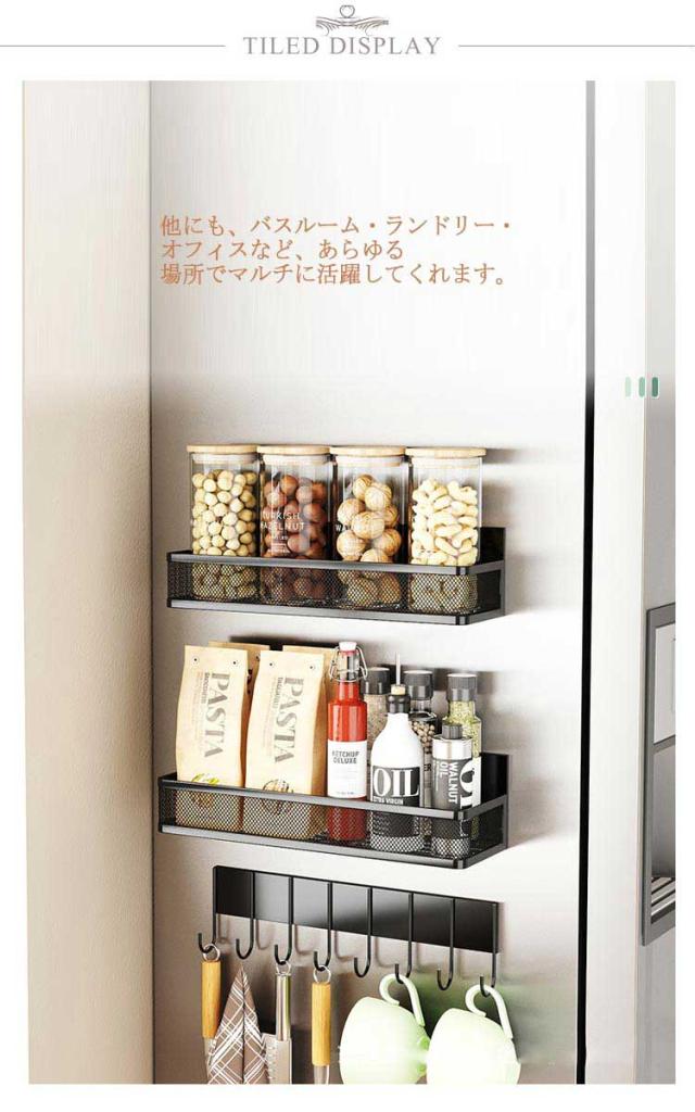 洗剤 保管 冷蔵庫サイドラック スパイスラック マグネット 浮かせる 3点セット ウォールラック ワイドラック 収納 磁石ラック マグネットラック 洗濯機 強力 収納ラック 調味料 マグネットラック 棚 横 多機能 壁掛け
