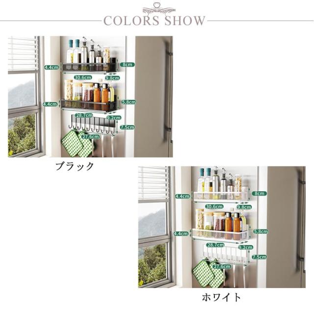 | ・マグネットで取り付けるだけでたっぷりと収納できるラック ・磁石が付く平らな面やスチール壁面にくっつけるだけで簡単に設置できます。 ・使い方はアイデア次第で、調味料ラック以外にも、シンク周りのスポンジや洗剤ボトルの収納に。 ・他にも、バスルーム・ランドリー・オフィスなど、あらゆる場所でマルチに活躍してくれます。 | |