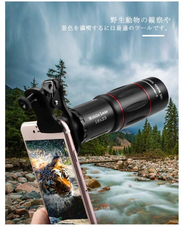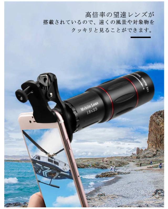 【フルセット】スマホ望遠レンズ ライブ専用 18倍 スマホ用カメラレンズ 単眼鏡 望遠鏡 セルカレンズ 望遠 望遠レンズ 携帯用望遠レンズ レンズセット スマホ用レンズ スマホに簡単装着 三脚付き iphone android