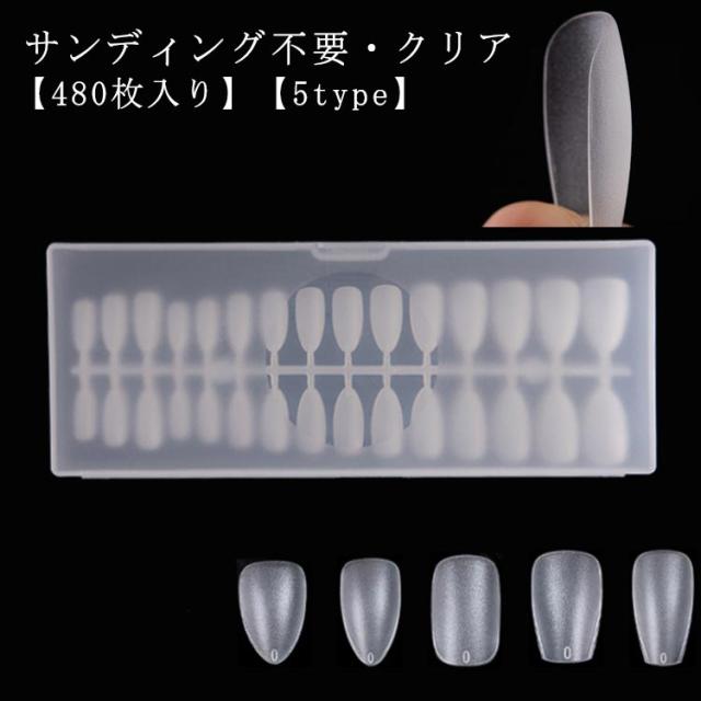 | 【480枚入り】【サンディング不要・クリア】【5type】 適度な柔軟性があるため折り曲げても跡がつきにくい 収納ケース付きなので、整理シやすい。 サンディング加工不要で時間短縮。 爪にフィットしやすく自然な仕上がりになるのでオススメです。 ネイルサロンでのネイルデザイン用サンプルチップや、つけ爪などに!! | |