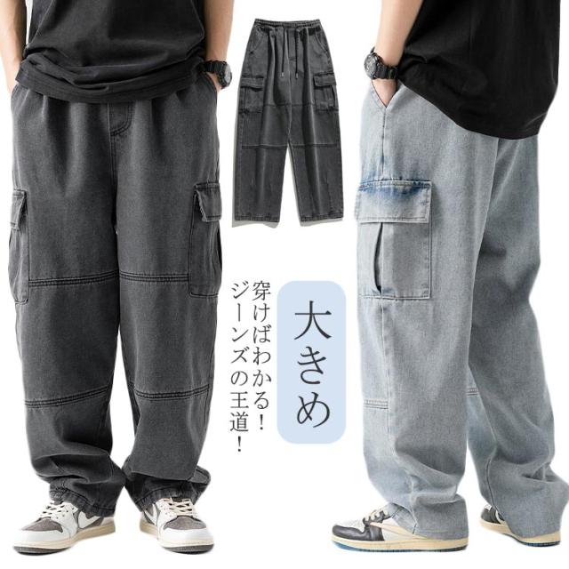デニム カーゴパンツ メンズ デニムパンツ 大きいサイズ ミリタリー ワークパンツ 大きめ ゆったり ワイドパンツ デニムカーゴ パンツ バギーパンツ 作業着 作業ズボン カジュアル ダンス衣装 ヒップホップ ストリート系