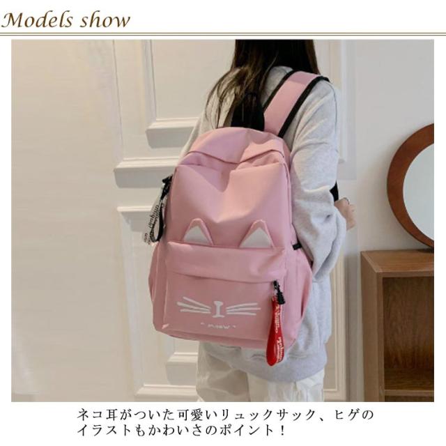| 猫派にはたまらない!ネコ耳付きリュック。 ネコ耳がついた可愛いリュックサック、ヒゲのイラストもかわいさのポイント! 女の子にぴったりなネコ耳付きデザイン。かわいいパステルカラーの5色展開! 普段使いにぴったりな軽量なバック、A4サイズのノートや雑誌がゆったり入るサイズです。 小学生のお子様の毎日をもっと楽しく素敵なものにできればと願っております。 | |