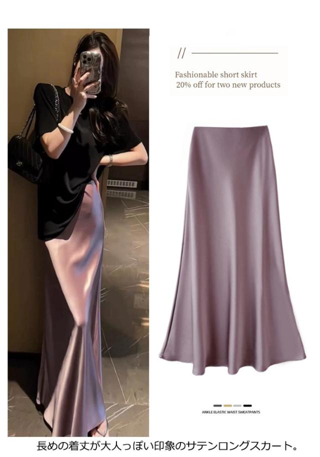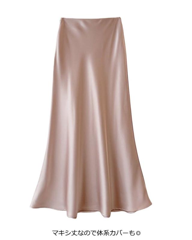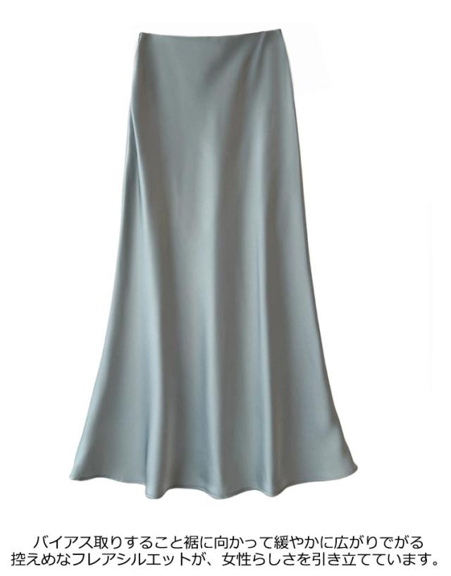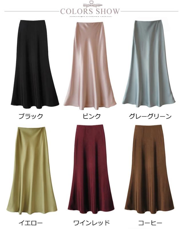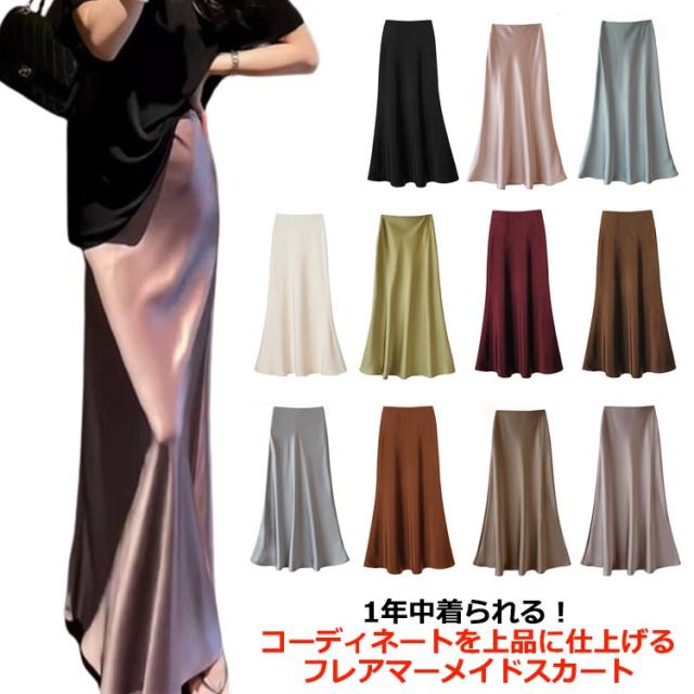 サテン エレガント マキシ丈 スカート きれいめ 通勤 ロングスカート 大人 フレア 光沢感 落ち感 マーメイド 上品 とろみ 韓国風 フェミニン サテン 美脚 レディース 体型カバー 20代 30代 40代