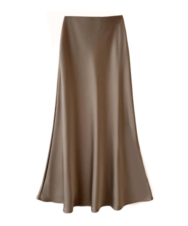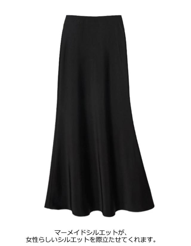 | 1年中着られる! コーディネートを上品に仕上げるフレアマーメイドスカート 長めの着丈が大人っぽい印象のサテンロングスカート。 マーメイドシルエットが、女性らしいシルエットを際立たせてくれます。 マキシ丈なので体系カバーも◎ ウエストゴムなので着脱しやすく、ストレスのない着心地です。 バイアス取りすること裾に向かって緩やかに広がりでがる控えめなフレアシルエットが、女性らしさを引き立てています。 合わせるトップスを選ばないので、幅広いスタイリングに重宝します。 | |