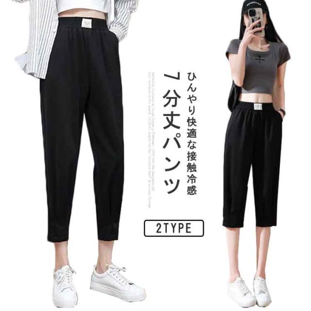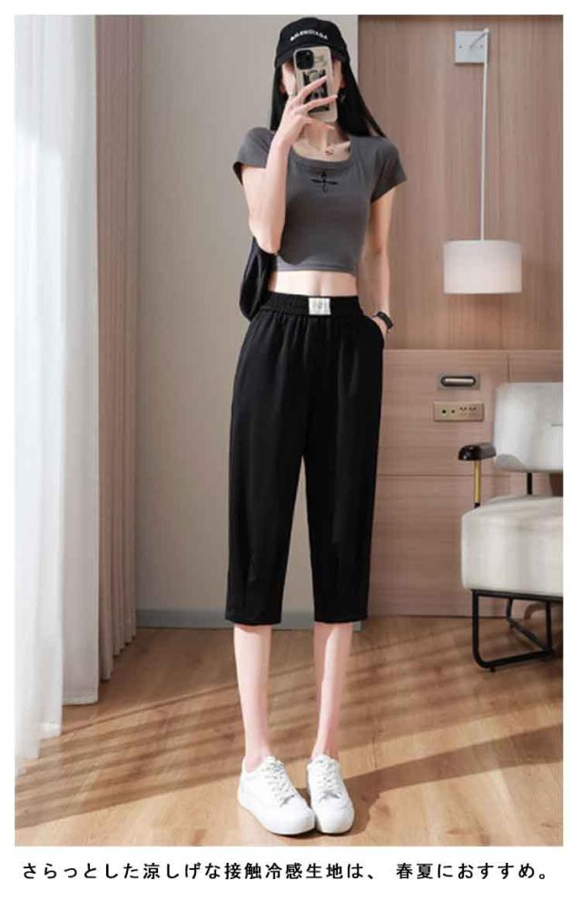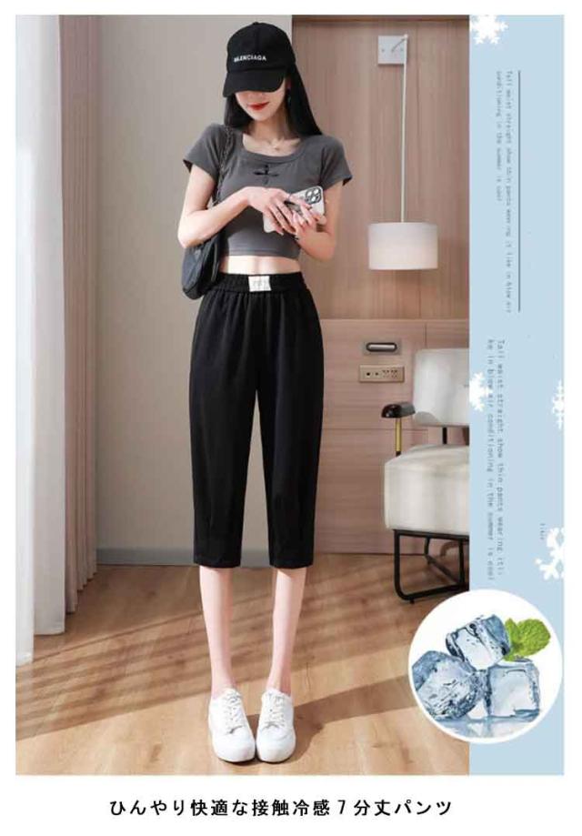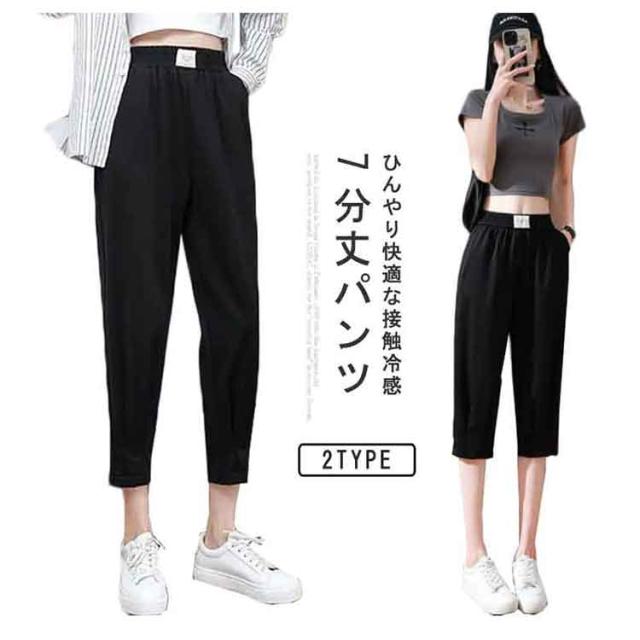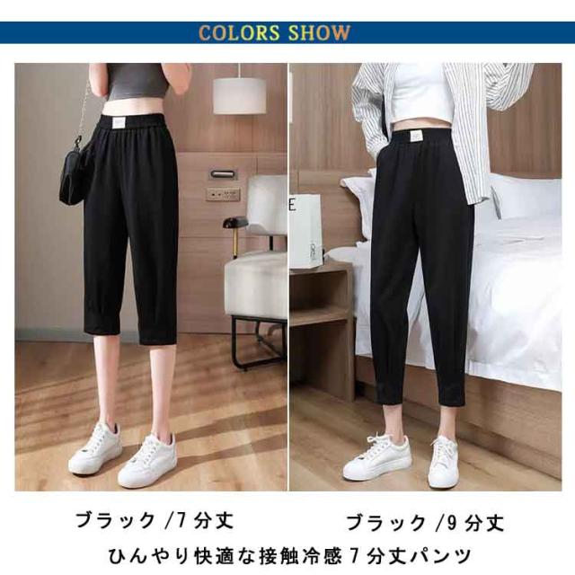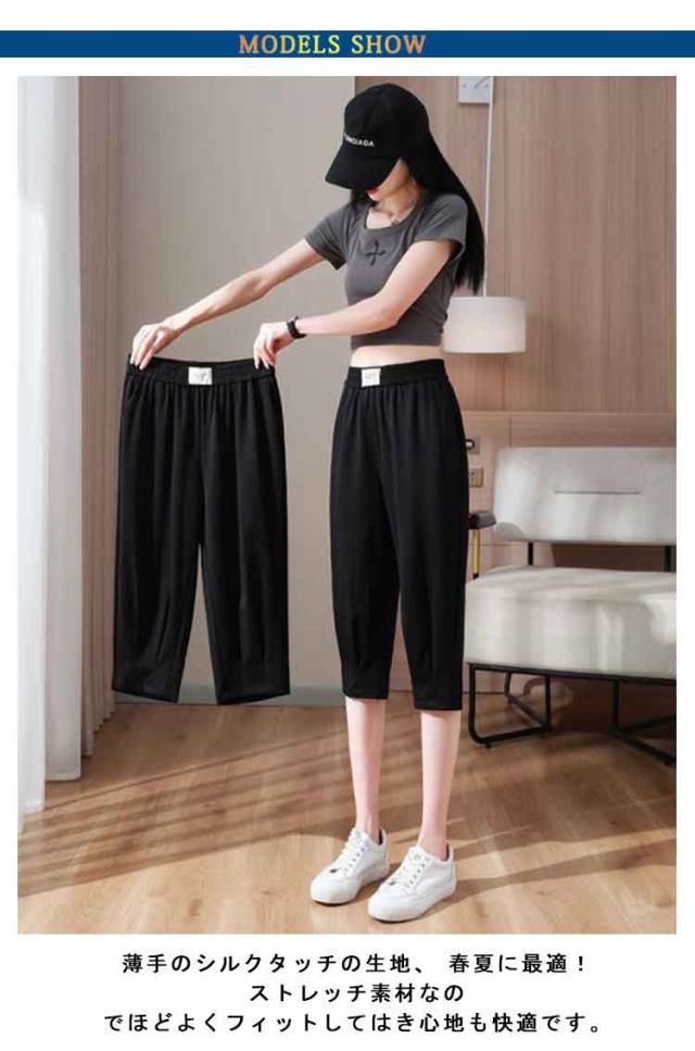 7分丈 アイスシルクパンツ サルエルパンツ レディース 接触冷感 7分丈パンツ ひんやり 涼しい クロップドパンツ 七分丈 薄手 春 夏 吸汗速乾 アンクル パンツ レギンスパンツ クロップド 大きいサイズ 美脚 無地 シンプル 体型カバー 送料無料