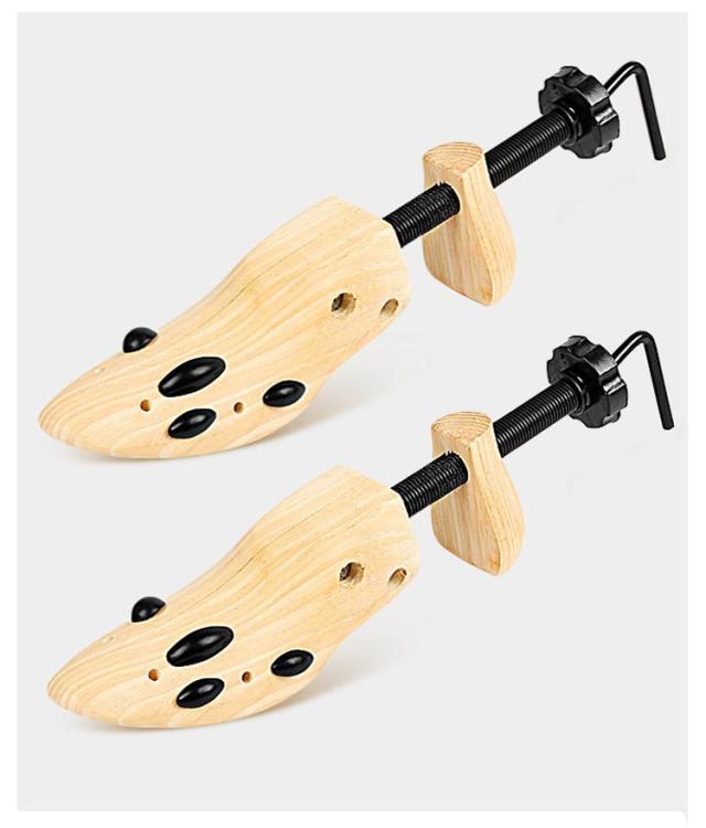 | 木製ブーツ用のシューストレッチャーです。 2個セット 素材には松の木を使用しており、この木材は天然の消臭・防虫・吸湿効果があるのが特徴。 ブーツ専用ストレッチャーを使えば、ブーツの幅を伸ばし足の形にしっかりフィット! ダボが付属していますので、それを伸ばしたい箇所へ差し込むだけ。 靴の中に入れて回すだけの簡単操作。 | |