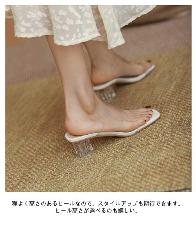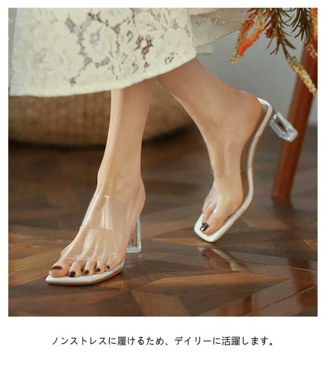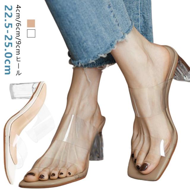 ミュール サンダル クリアサンダル レディース ミュールサンダル クリアヒール スクエアトゥ 太ヒール ハイヒール 4cm 6cm 9cm ヒール 走れる 靴 シューズ チャンキーヒール 歩きやすい 痛くない カジュアル 安定感