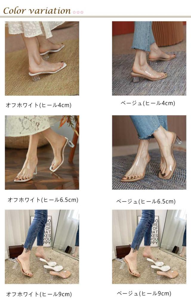 | 色 | オフホワイト(ヒール4cm) ベージュ(ヒール4cm) オフホワイト(ヒール6.5cm) ベージュ(ヒール6.5cm) オフホワイト(ヒール9cm) ベージュ(ヒール9cm) |