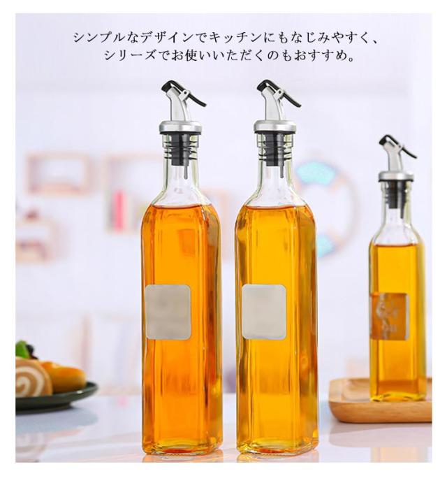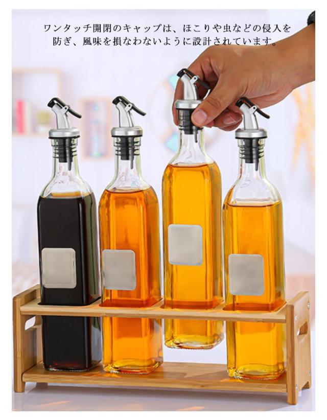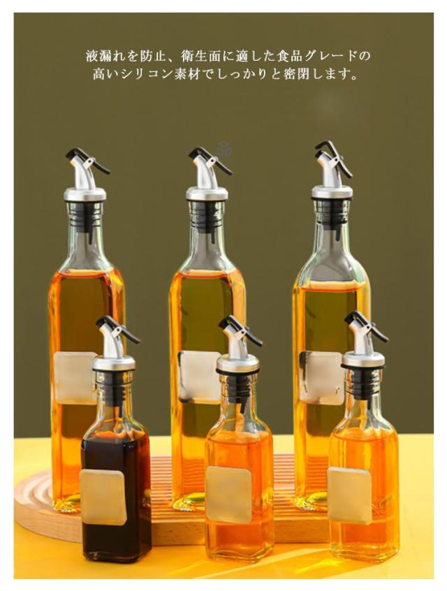 | ワンタッチ開閉可能角型ガラス製オイルボトル。【500ml】【4個セット】 ワンタッチ開閉のキャップは、ほこりや虫などの侵入を防ぎ、風味を損なわないように設計されています。 液漏れを防止、衛生面に適した食品グレードの高いシリコン素材でしっかりと密閉します。 お料理をしながら片手で使うことができるため、日常のお料理に活躍しそうです。 中身の減り具合いが見やすく、詰め替え時がわかるというメリットもあります。 シンプルなデザインでキッチンにもなじみやすく、シリーズでお使いいただくのもおすすめ。 | |
