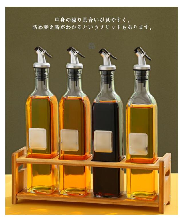 ビネガー 角型 4本セット ドレッシングボトル 4本セット 500ml オイルボトル ガラス 油ボトル オイルポット 醤油ボトル 酢ボトル オイル差し 液だれしない 詰め替えボトル 調味料ボトル オリーブオイル 調味料入れ ボトル スリム おしゃれ