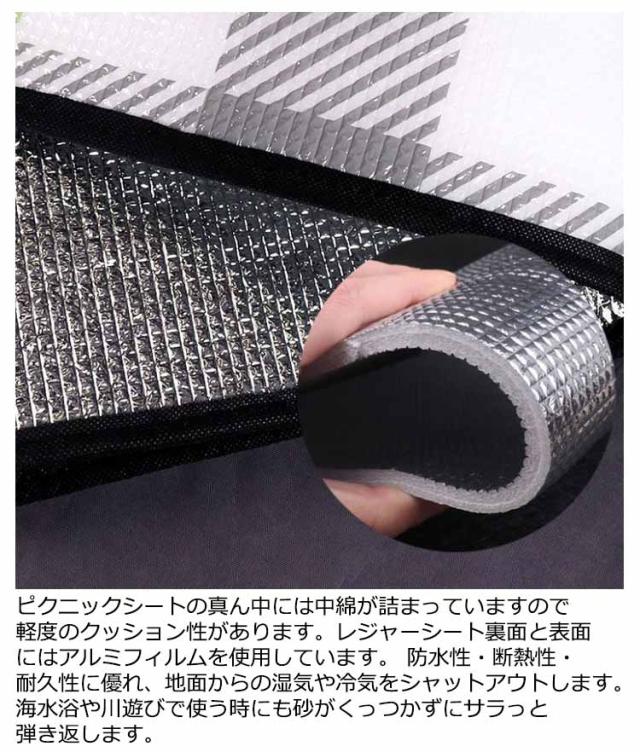 | 三層構造で作られた極厚レジャーシート。【厚さ8mmスポンジ】【4-8人用】 ピクニックシートの真ん中には中綿が詰まっていますので軽度のクッション性があります。レジャーシート裏面と表面にはアルミフィルムを使用しています。 防水性・断熱性・耐久性に優れ、地面からの湿気や冷気をシャットアウトします。海水浴や川遊びで使う時にも砂がくっつかずにサラっと弾き返します。 ピクニック、花見、花火大会、運動会などのレジャーや学校行事で無難に活躍します。 キャンプマット、レジャーシート、ピクニックマット、ビーチシート、テントシートなどとして利用できます。 汚れた場合は、濡れた布などで簡単に拭き取ることができます。 | |