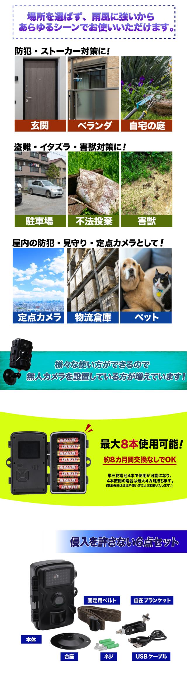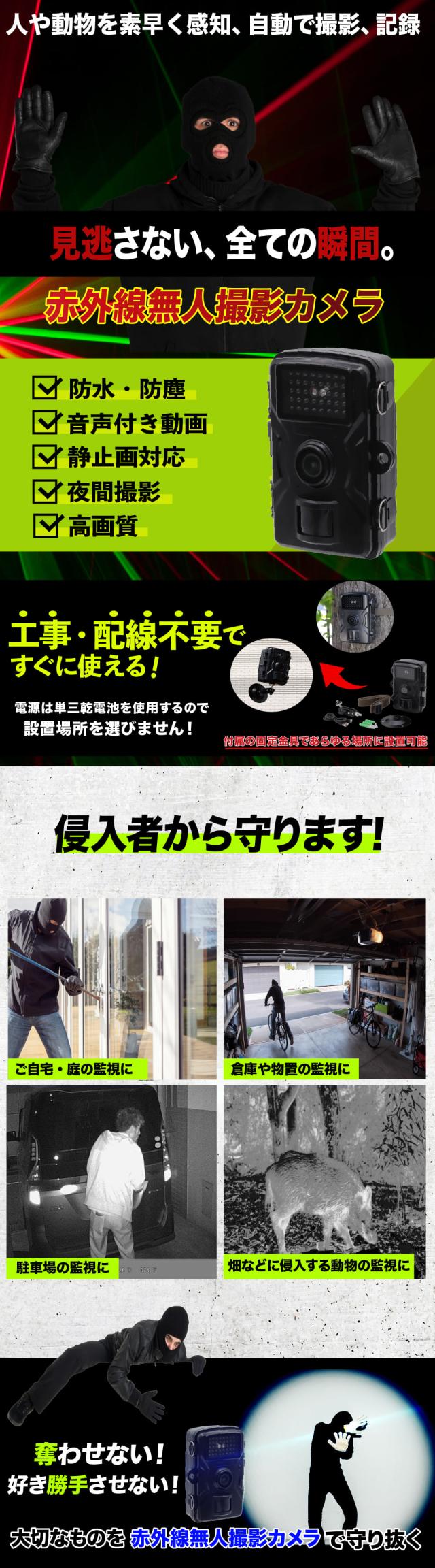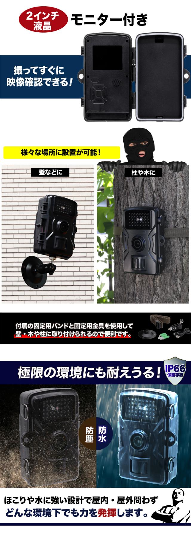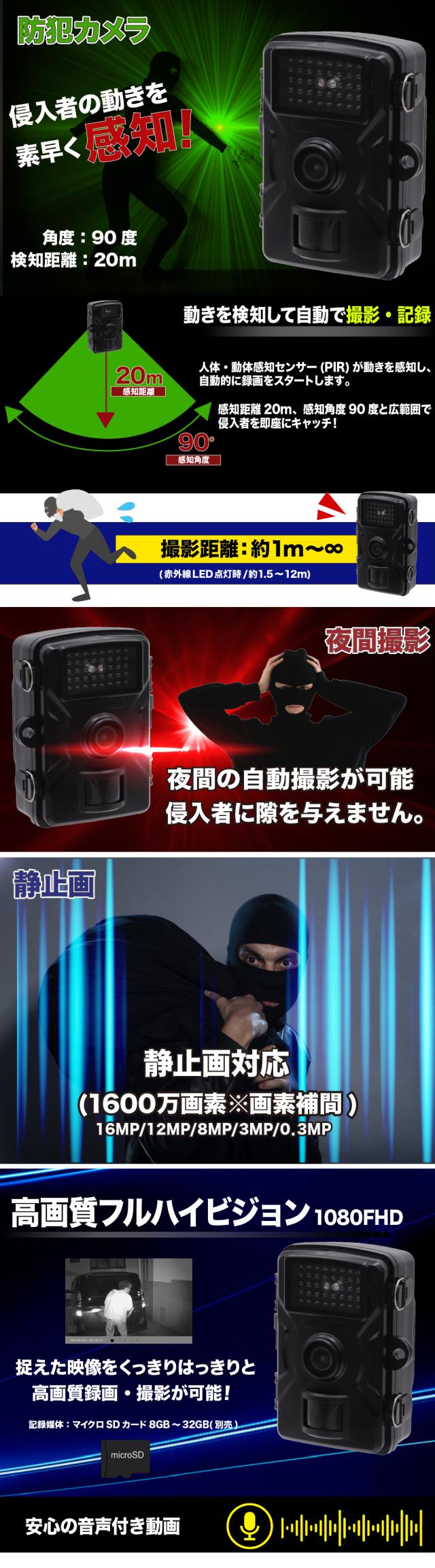 防犯カメラ SDカード付き 屋外 監視 自動撮影 留守 駐車場 玄関 物置 庭 赤外線 無人カメラ カメラ 撮影 音声付き動画 マイク内蔵 防犯対策 害獣対策 夜間撮影 レコーダー 自宅 庭 ベランダ 駐車場 ゴミ置き場 農場 畑 倉庫 送料無料