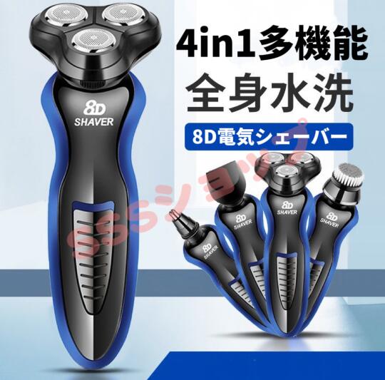 【期間限定】4in1 電動シェーバー 髭剃り お風呂剃り 丸洗い メンズシェーバー 防水 肌にやさしい 深剃り 男性用 徹底的に深剃り USB充電式 水洗い