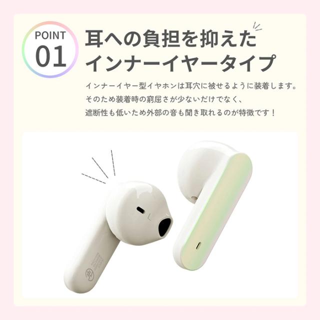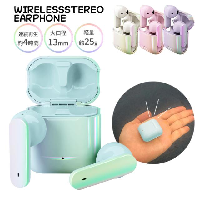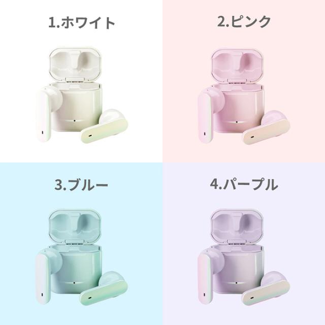 ワイヤレスイヤホン Bluetooth 完全ワイヤレス ホワイトピンク パープル ブルー 白 オーロラ ステレオ インナーイヤー かわいい おしゃれ
