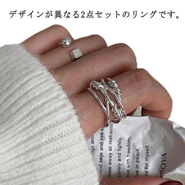 指輪 2点セット レディース シルバー リング アクセサリー おしゃれ フリーサイズ 調整可能 シルバー 指輪 重ね付け クロス ファッション雑貨 大人 可愛い おしゃれ プレゼント