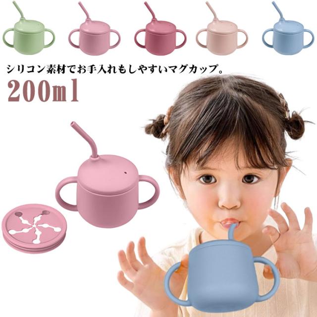 子どもカップ ベビー食器 ストローマグ ストロー ベビー用 シリコンマグ ハンドル付き 無地 シリコンマグカップ コップマグ スナックカップ 目盛り 200ml シンプル おしゃれ 電子レンジ 子供 食事用品 出産祝い 送料無料