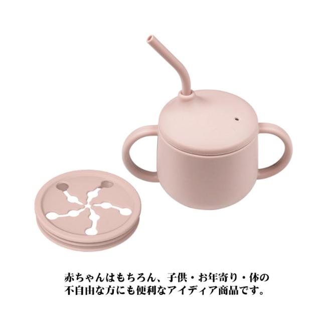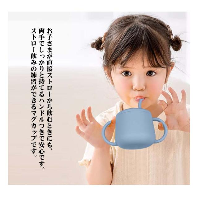 | シリコン素材でお手入れもしやすいマグカップ。 お子さまが直接ストローから飲むときにも、両手でしっかりと持てるハンドルつきで安心です。ストロー飲みの練習ができるマグカップです。 電子レンジ・煮沸使用OKで衛生的に使える。 ストローがついているので、コップがうまく使えない時期でも上手に飲めます。 赤ちゃんはもちろん、子供・お年寄り・体の不自由な方にも便利なアイディア商品です。プレゼントにも喜ばれています。 | |