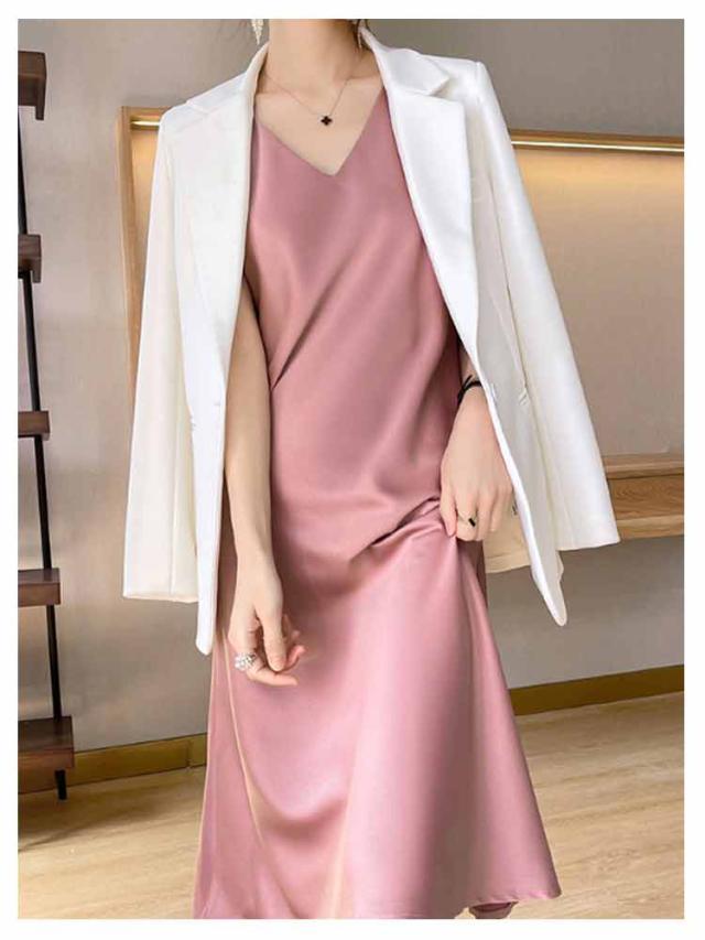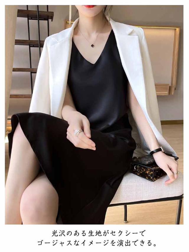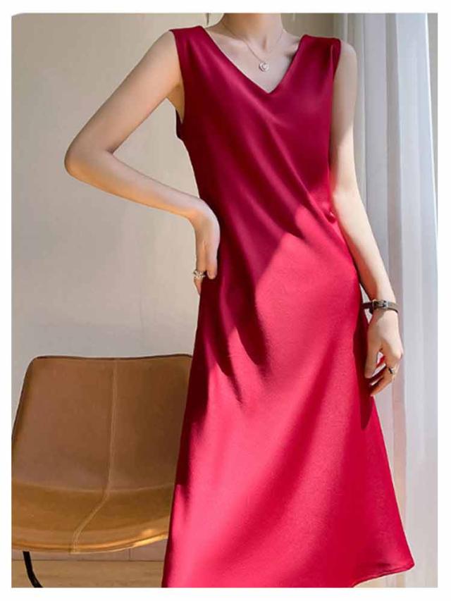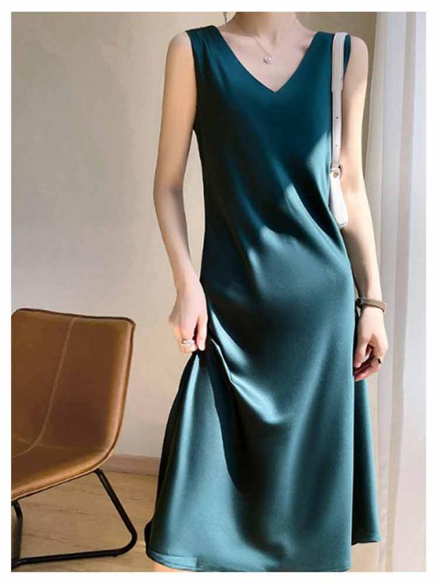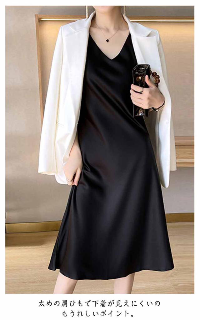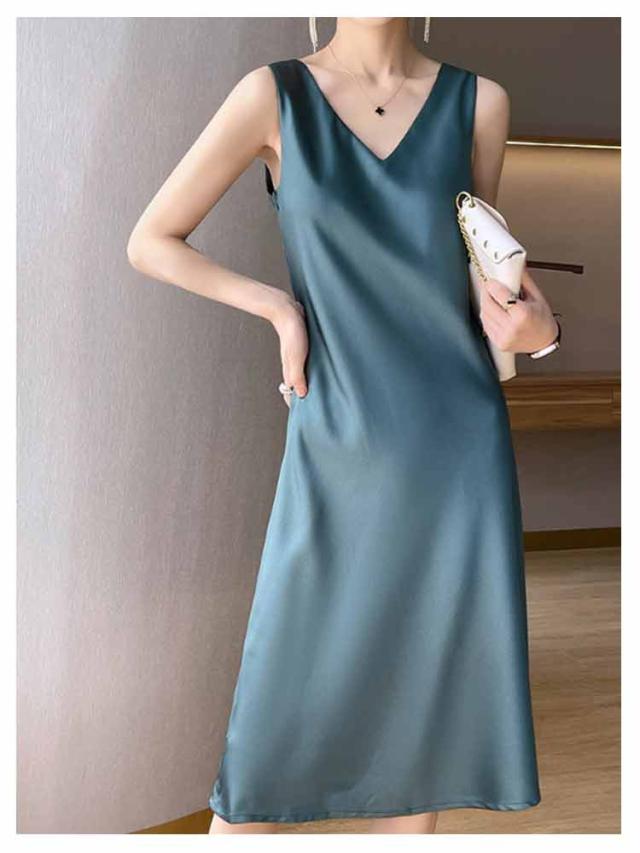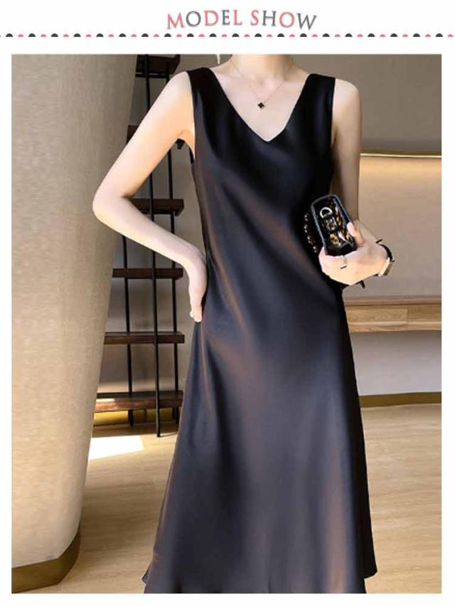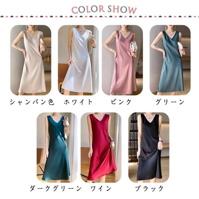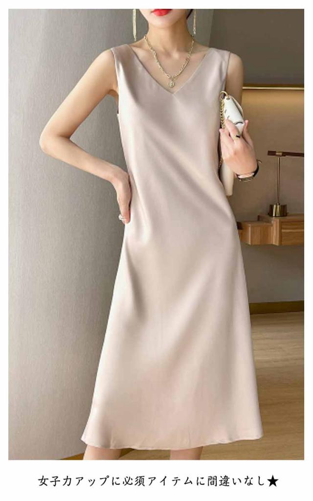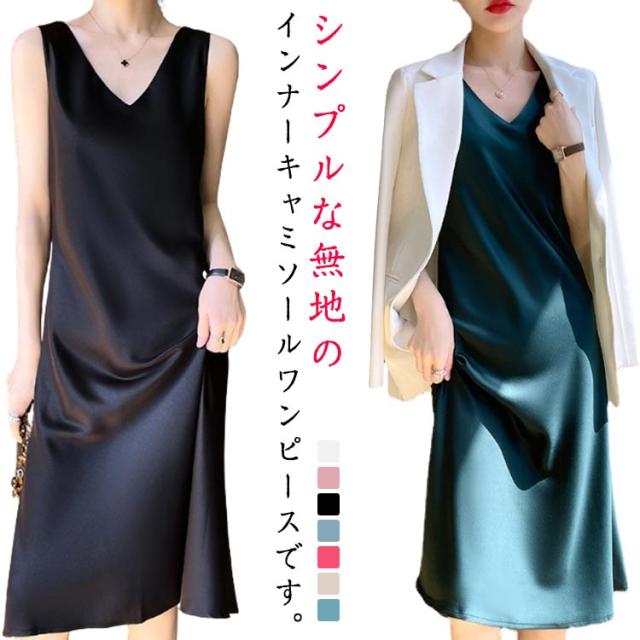 ロングワンピース サテン Vネック インナー ロングドレス ペチコート キャミソールワンピース 光沢 レディース セクシー つるつる スリップ キャミワンピース レイヤード風 お洒落 エレガント キレイめ 送料無料