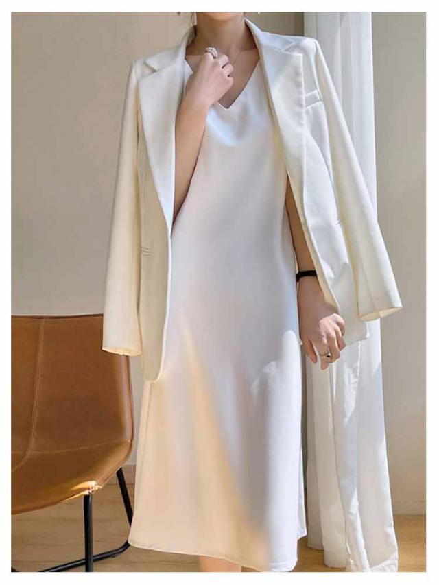 | シンプルな無地のインナーキャミソールワンピースです。 光沢のある生地がセクシーでゴージャスなイメージを演出できる。 太めの肩ひもで下着が見えにくいのもうれしいポイント。 シルエットのハッキリしたお洋服でも美しく見えます。 女子力アップに必須アイテムに間違いなし★ | |