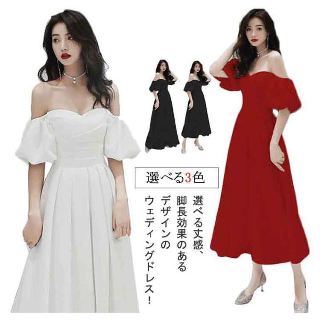 オフショルダー ドレス ウエディングドレス きれいめ ロングドレス カラードレス 大きいサイズ レディース 大人 女性 結婚式 花嫁 二次会 フレアワンピース 礼服 ブライダル 白ドレス 演奏会 前撮り 後撮り 大きいサイズ 可愛い 送料無料