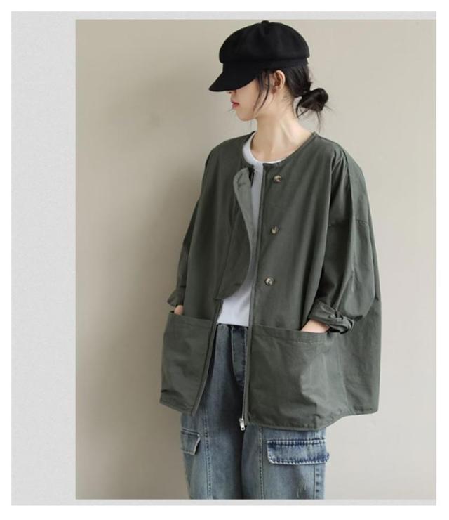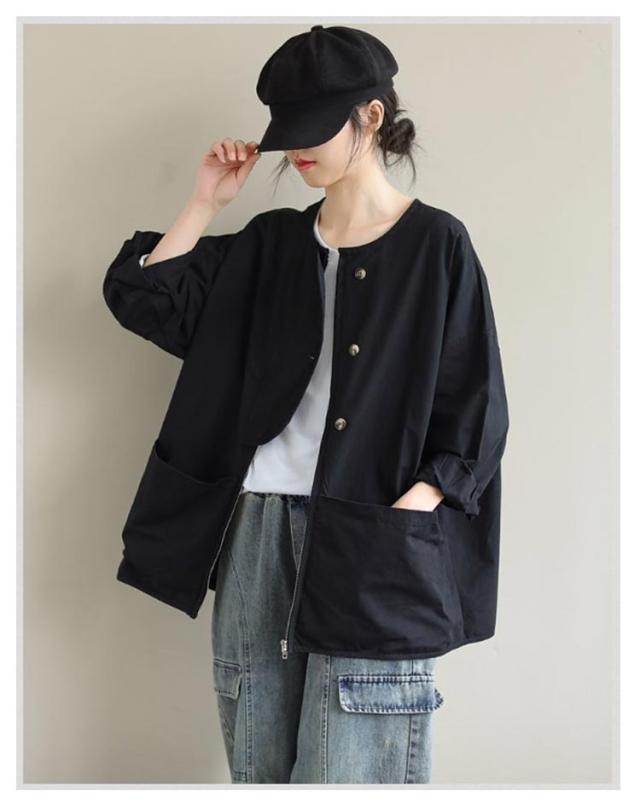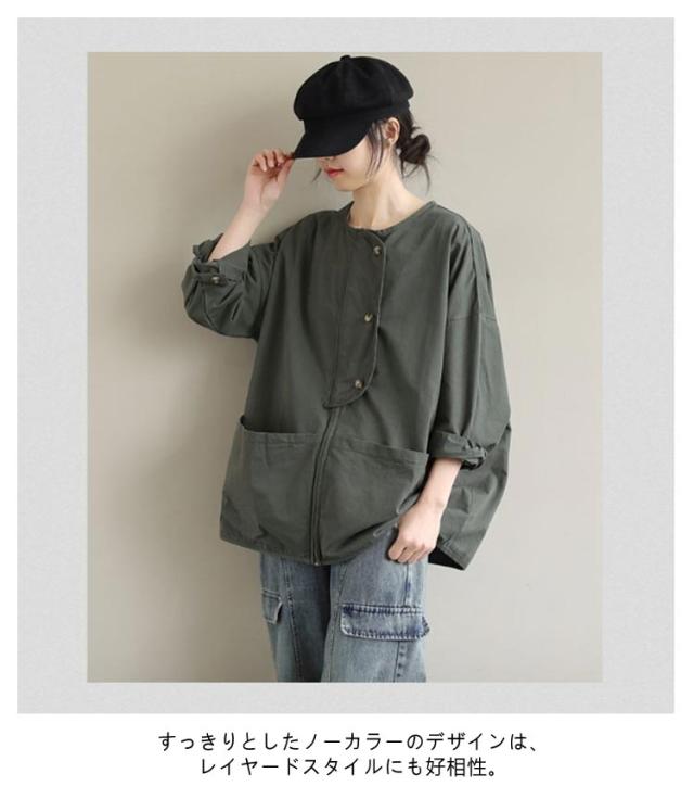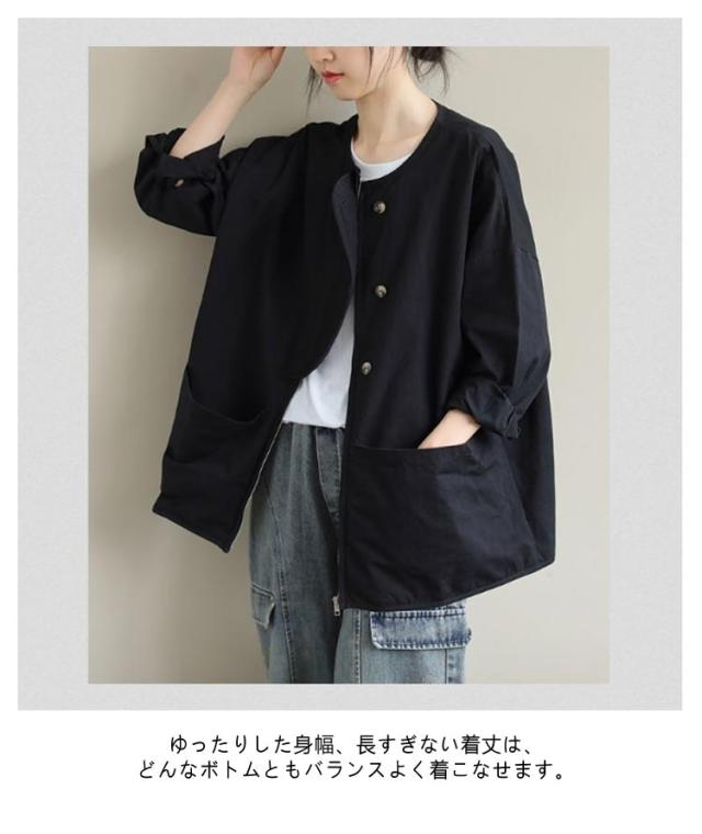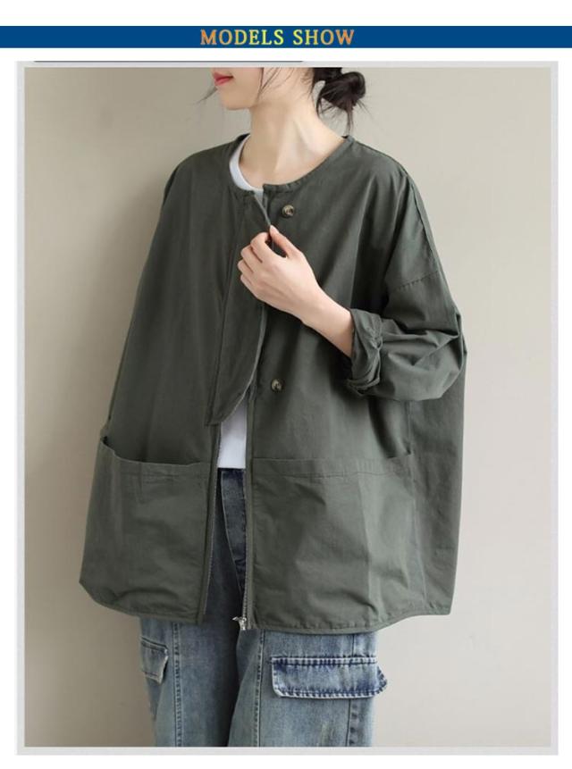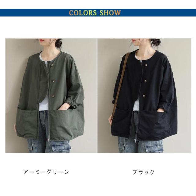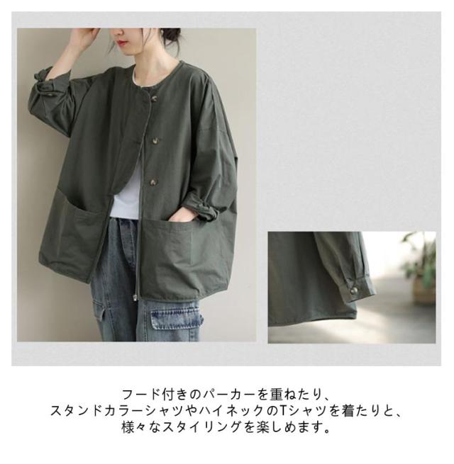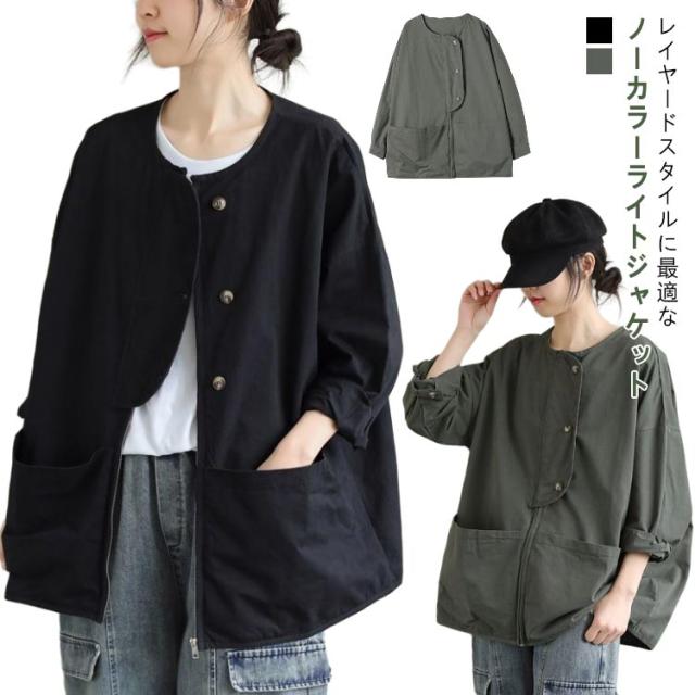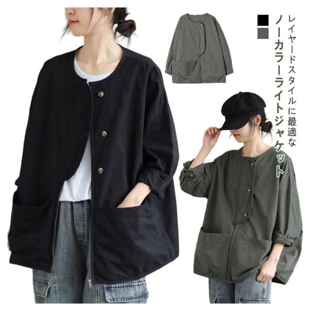 アウター ノーカラージャケット レディース ノーカラージャケット 春 ライトジャケット 大人 マウンテンパーカー 大きいサイズ 体型カバー 着?せ おしゃれ 秋 薄手 カジュアル 女性 無地 シンプル ポケット付き 羽織 通勤